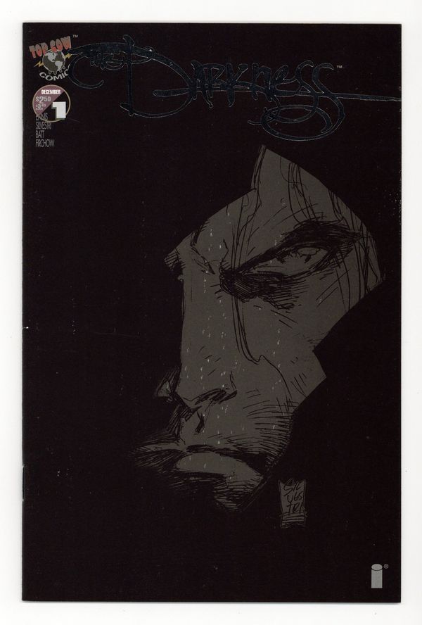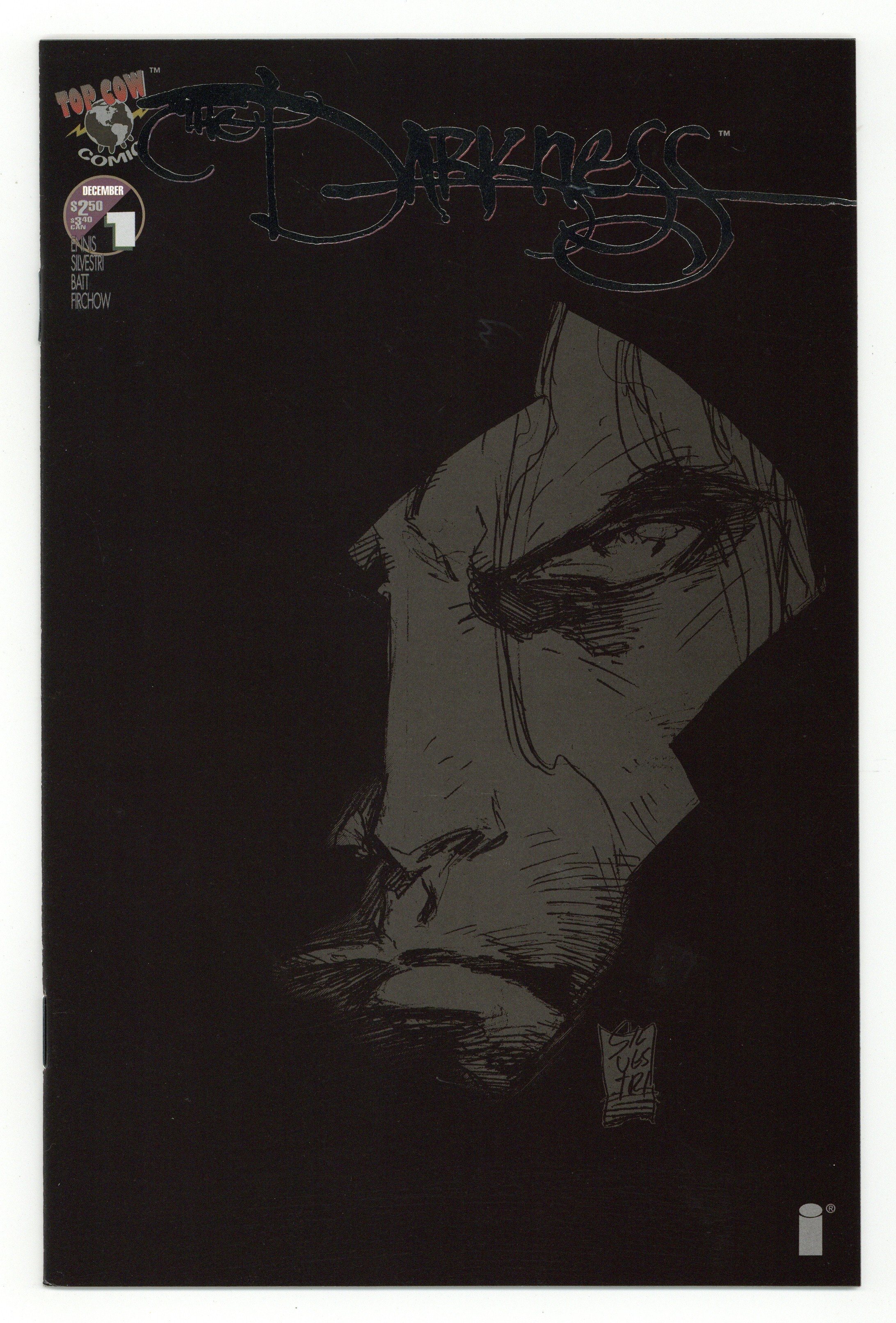 Platinum Edition. Silver Foil Title. Cover by Marc Sylvestri. "Coming Of Age," script by Garth Ennis, pencils by Marc Silvestri, inks by Matt Banning (as Batt); In New York City, Jackie Estacado is introduced as he stalks an undisclosed person for his "Uncle" Frankie Franchetti; The pair suspect that this man has been cheating the Franchetti Crime Family and decide on a whim that he would be better off dead; Jackie crushes the man with his sports car and shoots him several until he's dead; The Brotherhood of Darkness and a group of Angelus' warriors attack Jackie. "I Hope You've Enjoyed The Darkness" article by Marc Silvestri, pencils by Silvestri; Silvestri describes the making of the series. 36 pgs., full color. Cover price $2.50.