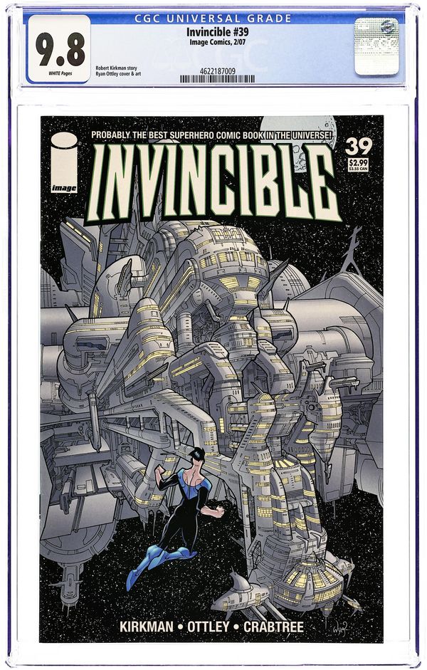 Story ROBERT KIRKMAN. Art & cover RYAN OTTLEY & BILL CRABTREE The Martian armada is headed for Earth ? and Invincible is the only thing that stands in their way! Led by the parasitic Sequids, the Martians plan to invade Earth and provide the Sequids with a new slave race. If Invincible fails, it's all over. Luckily he brought along some HELP! 32 PAGES FC Cover price $2.99.