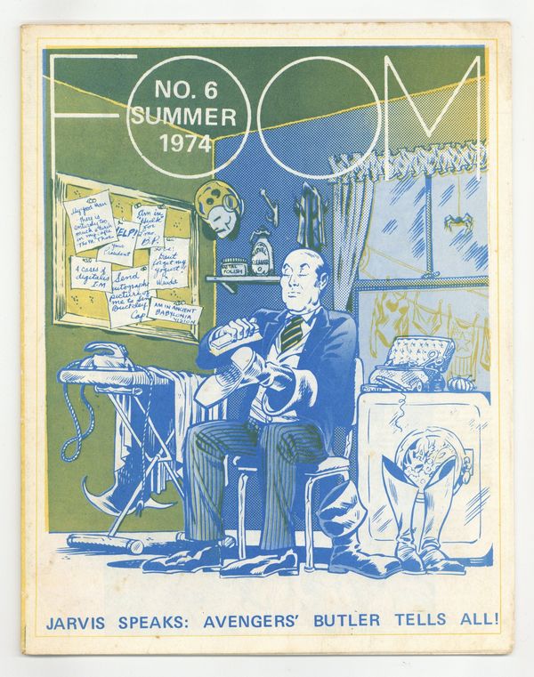 Avengers issue, Pt. 1 of 2 (see next issue for Pt. 2). Illustrations by Dave Cockrum (4), Rick Hoberg, and Billy Graham (uninked pencils from Jungle Action 12). "Interview" with Jarvis, butler at the Avengers mansion. Cartoons by Stan Lee and Marie Severin. Roy Thomas talks about the upcoming "Man-Gods From Beyond the Stars."