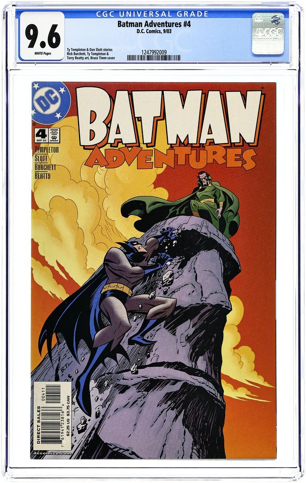 WRITTEN BY TY TEMPLETON AND DAN SLOTT. ART BY RICK BURCHETT, TEMPLETON, AND TERRY BEATTY. COVER BY BRUCE TIMM. Featuring two exciting tales of the Dark Knight! Batman confronts an old foe ? Ra's Al Ghul ? in a very old place: Easter Island! Plus, in the back-up story, see the World's Greatest Detective squeeze info out of a bad guy in a scary but scientific way! FC, 32 PGS. Cover price $2.25.