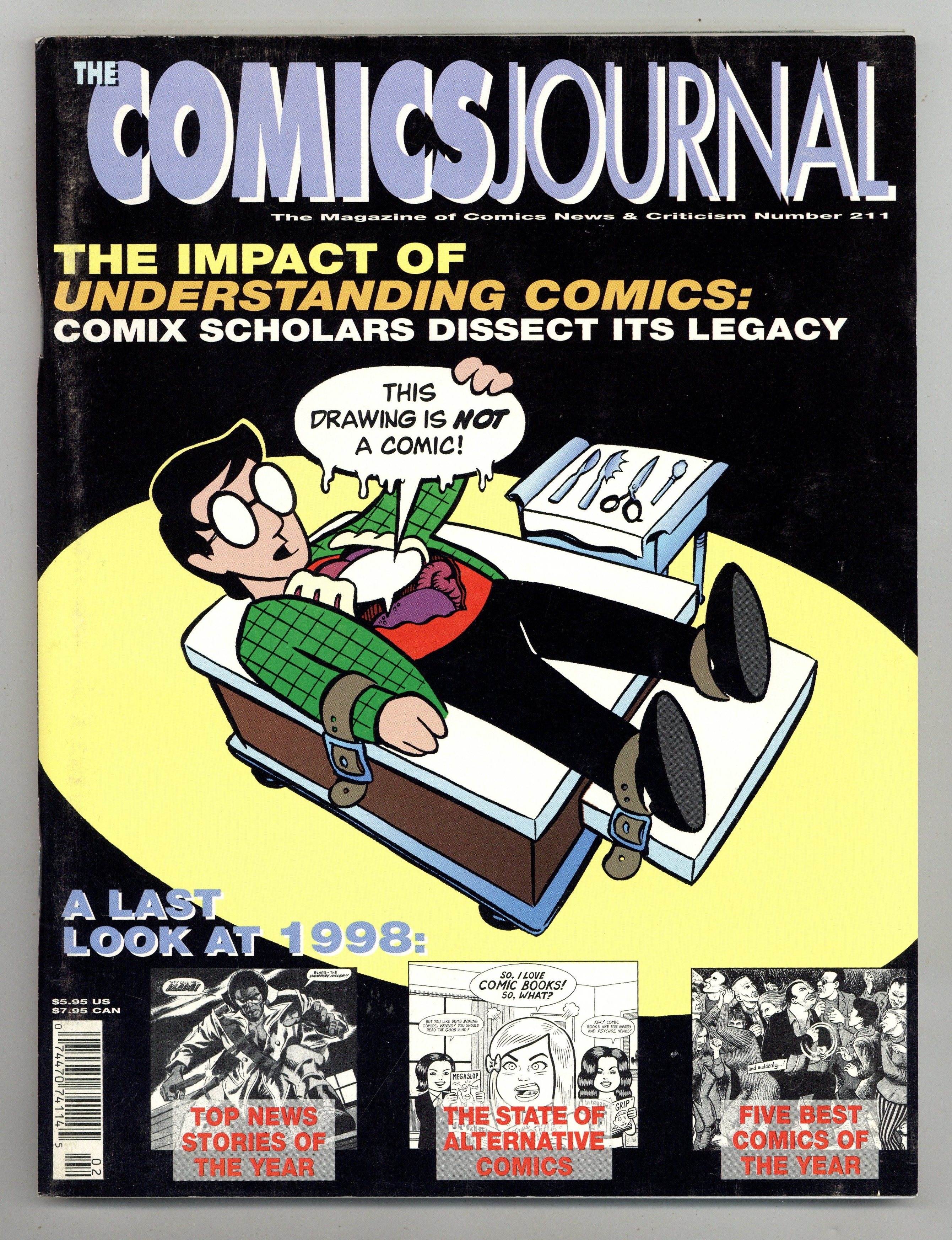 The impact of Understanding Comics - comix scholars dissect its legacy; a last look at 1998 - top news stories of the year, the state of alternative comics, and the 5 best comics of the year. Cover price $5.95.