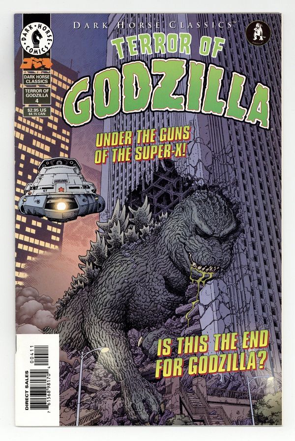 Published Nov 1998 by Dark Horse.$15.00Story and art by Kazuhisa Iwata. Cover by Arthur Adams. Godzilla is tearing up the heart of Tokyo, and the military is powerless to stop him . . . or are they? Here comes Japan's ultimate secret weapon, the Super X! Hold on, it's gonna be a rough ride! In color for the very first time anywhere, this manga classic was originally published by Dark Horse in black and white in 1988. 32 pages, FC. Cover price $2.95.