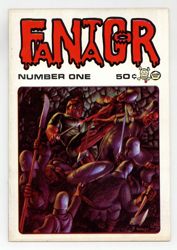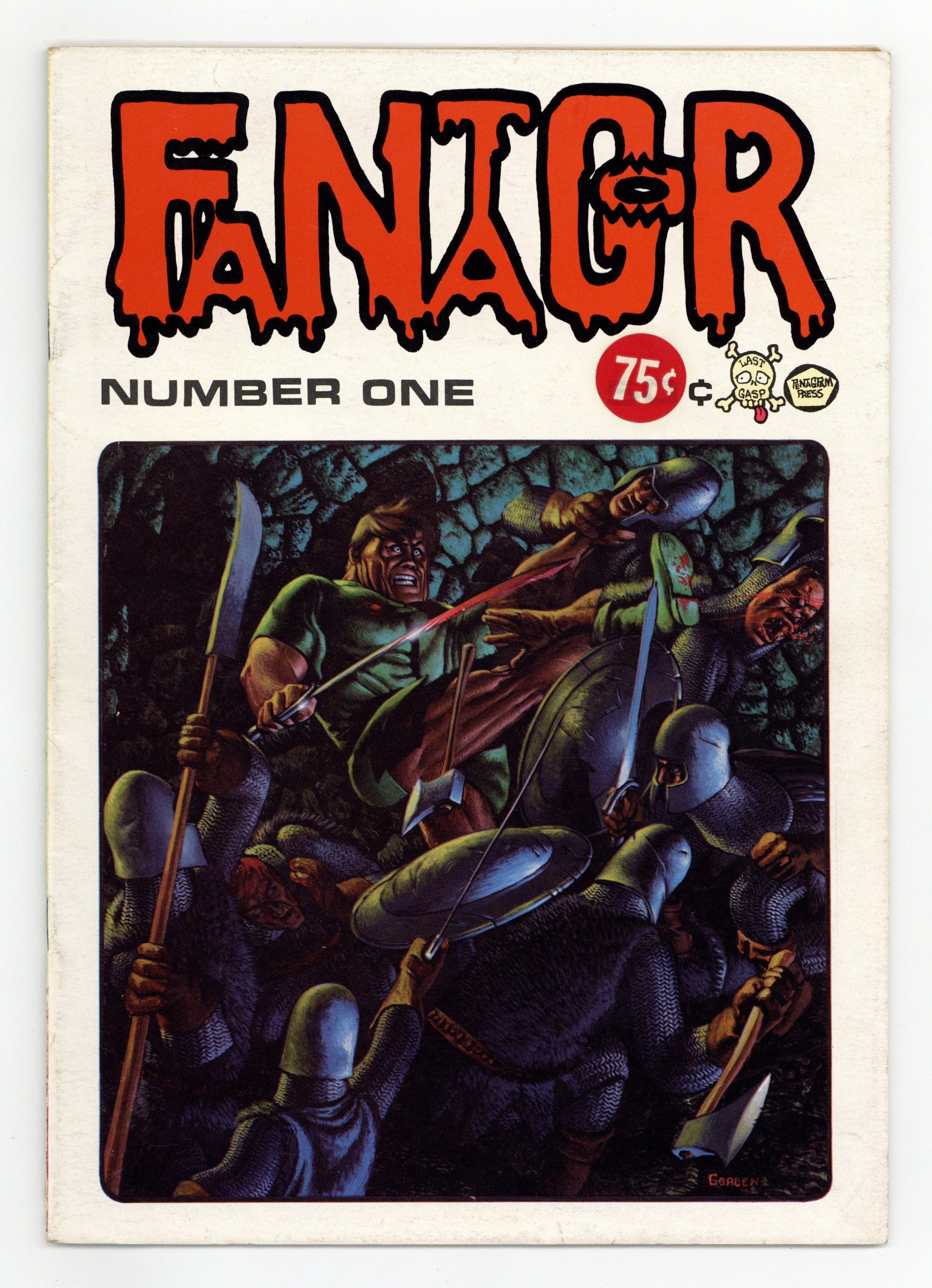 Last Gasp reprints of Richard Corben's originally self-published horror/adventure comic Fantagor. Last Gasp released a second, third, and fourth printing of this issue; all are thought to be indistinguishable from one another. Twilight of the Dogs and Inna Pit by Richard Corben. Also, The Devil in the Well, story by Starr Armitage with art by Herb Arnold, and Razar the Unhero, story by Starr Armitage with art by Corben. Mature readers. 7" x 10". Black and white; 36 pages. Covers by Corben. Cover price $0.50. Cover price $0.50.