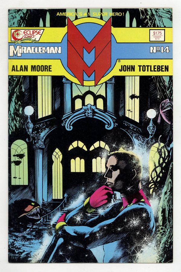 $15.50Cover by John Totleben. Written by Alan Moore and Doug Moench. Art by John Totleben and Jim Sullivan. In this issue: Johnny Bates breaks out again as the storyline turns even darker in the Miracleman story "Pantheon" by Alan Moore and John Totleben. Plus: "Nuclear Spring" by Doug Moench and Jim Sullivan. 32 pages, full color. Cover price $1.75.