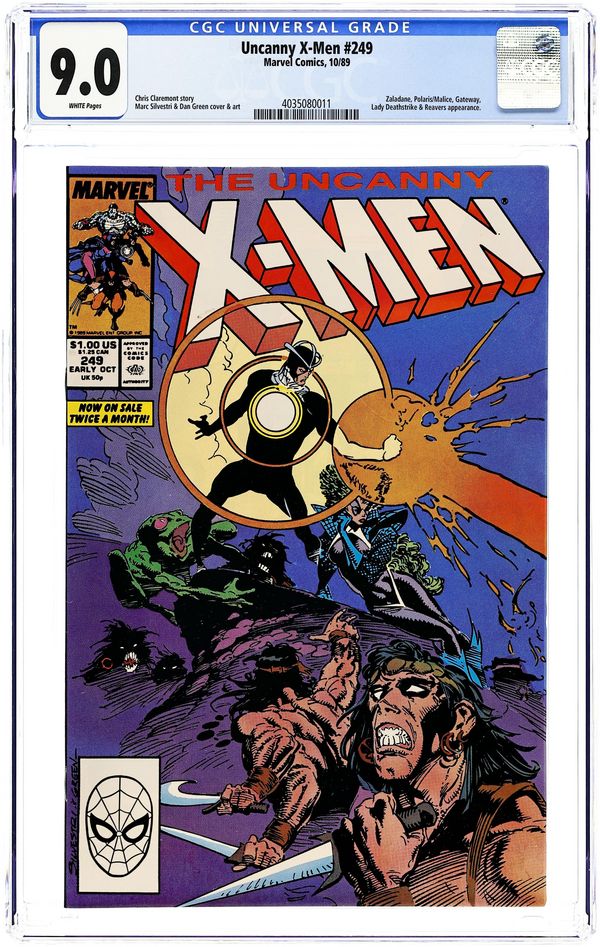 "The Dane Curse!" Part 1 of 2. Story by Chris Claremont. Art and cover by Marc Silvestri and Dan Green. In the shocking aftermath of last issue's events, Havok receives a desperate call for help from his former lover Lorna Dane, a.k.a. Polaris! 36 pgs. Cover price $1.00.