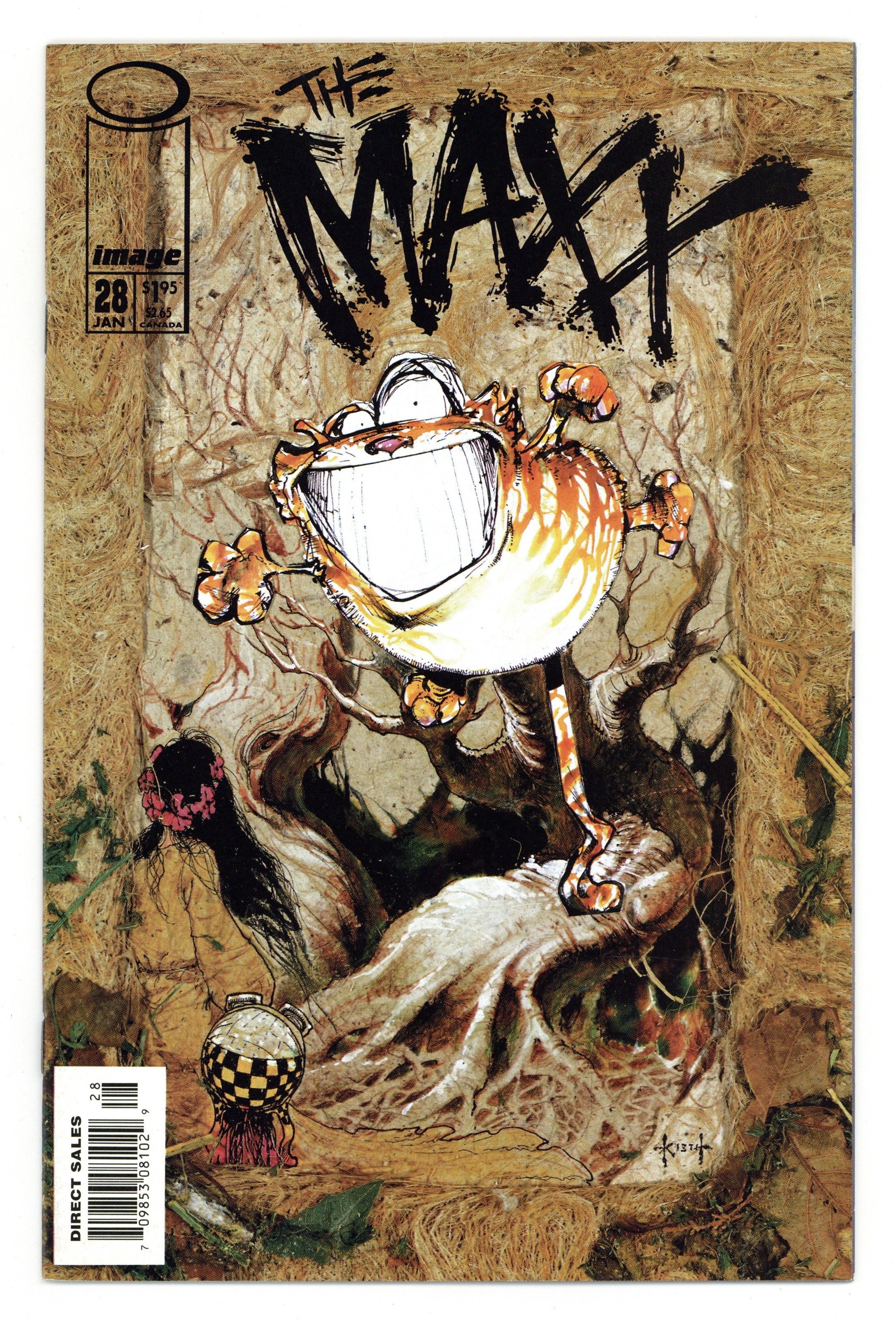 $29.00Written by Sam Kieth. Art by Sam Kieth and Jim Sinclair. Cover by Sam Kieth. Pool Of Tears; Artie guides Sara into her Outback to rescue Julie; the land is now a barren desert; Sara and the Princess of the Castle of Quilts go looking for Julie; Iago traps Sara; the Princess summons the Maxx. The Maxx illustration by Craig Cheape. The Maxx illustration by David Ray Preston, Jr. 36 pgs., full color. $1.95. Cover price $1.95.