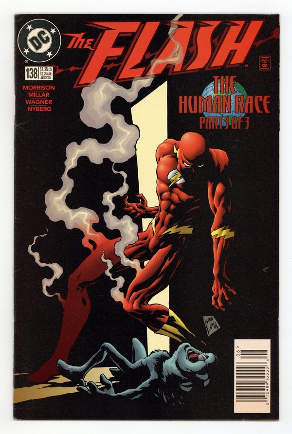 "The Human Race Part Three: Home Run." Script by Grant Morrison and Mark Millar, pencils by Ron Wagner, inks by John Nyberg. People of the world help Wally West in his race against Kwyzz, a strange energy creature who came through the radio from another world and was Wally's childhood friend. Cover art by Steve Lightle. Cover price $1.95.