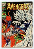 $29.50First appearance of the Avengers' Quinjet in "Some Say the World Will End in Fire, Some Say in Ice" Guest-starring Doctor Strange and the Black Knight. Script by Roy Thomas. Pencils by John Buscema. Inks by George Klein. Cover by John Buscema and George Klein. Story continues from Doctor Strange 178. A quiet night at Avengers Mansion is interrupted by the sudden arrival of the Master of the Mystic Arts! Dr. Strange warns that the Spell of Fire and Ice unleashed by the Sons of Satannish could destroy the world! And he requests immediate help from Earth's Mightiest Heroes! Without delay Hawkeye and the Black Knight rush to Antarctica to battle Surtur, while the Vision and T'Challa fly to Africa to fight Ymir! The Fire Demon and the Frost Giant are virtually indestructible! Does Doctor Strange have a magic ace up his sleeve (or perhaps cloak) to save the Earth? Avengers Lineup: Black Panther, Hawkeye, and the Vision. (Note: The letters page includes letters from comics editor Kim Metzger and Elfquest co-creator Richard Pini.) 36 pages. 12 cent cover price. Cover price $0.12.