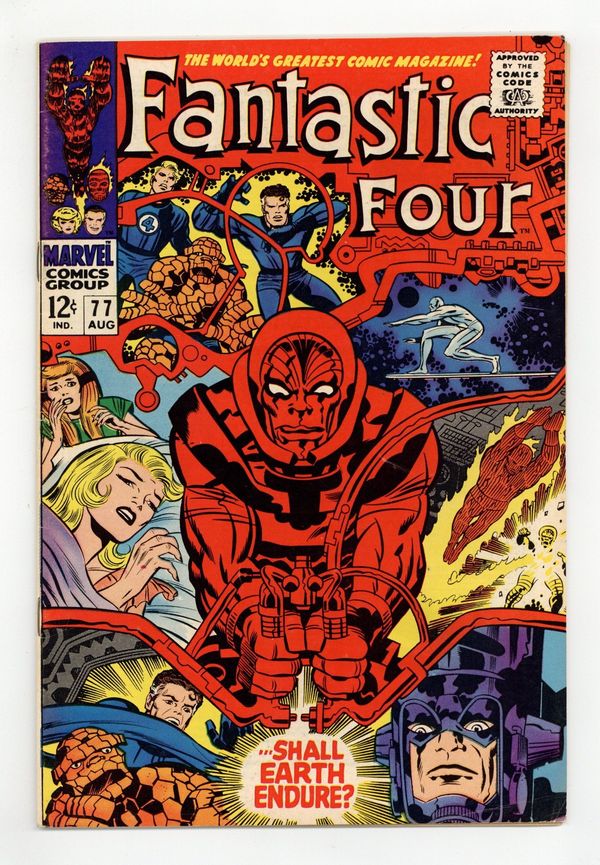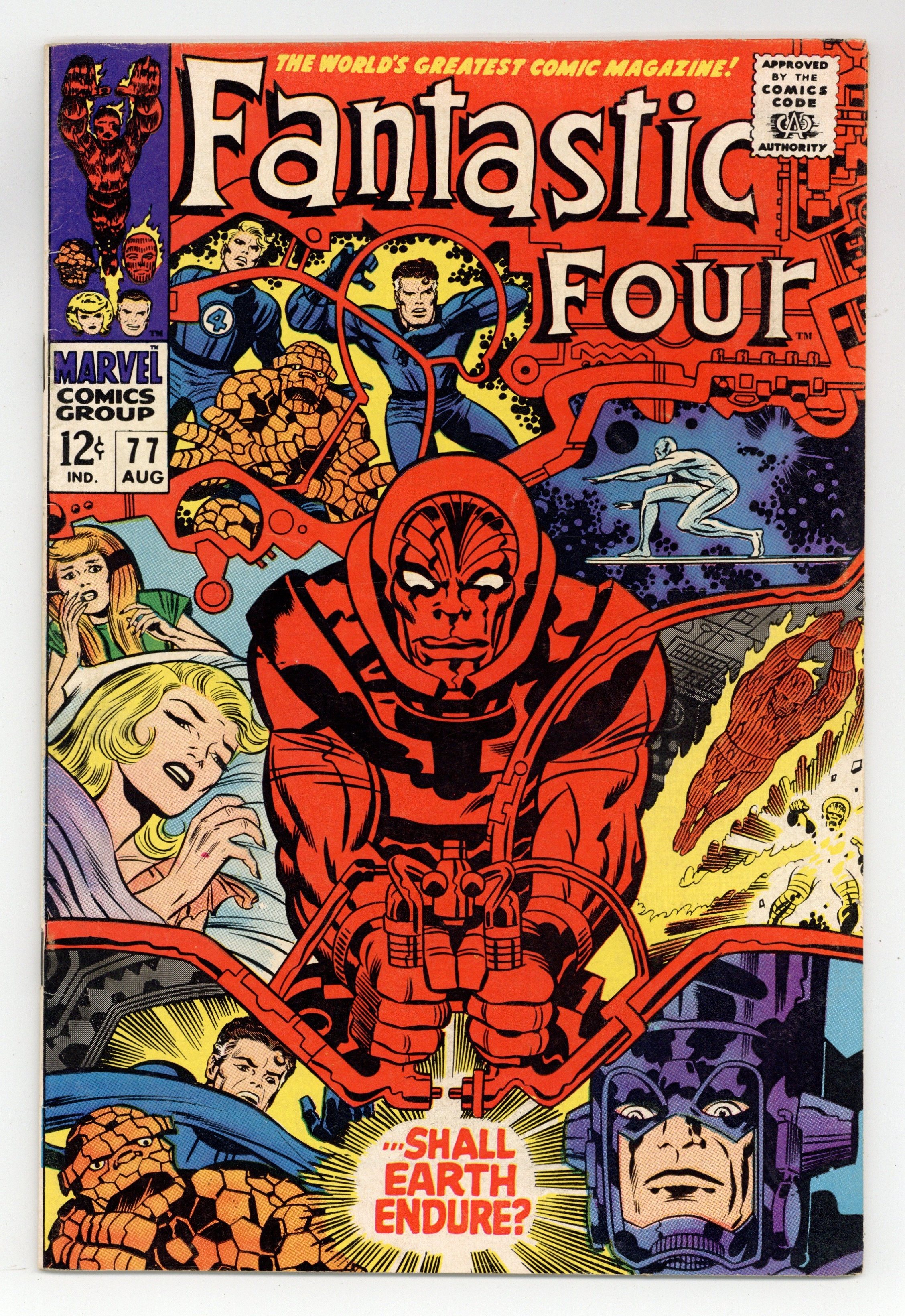 Cover pencils by Jack Kirby, inks by Joe Sinnott. Shall Earth Endure?, script by Stan Lee and Jack Kirby (co-plot), pencils by Jack Kirby, inks by Joe Sinnott; Reed, Ben, and Johnny battle Psycho-Man in the Microverse. Letter to the editor from comics writer Tony Isabella. Reprinted in Marvel's Greatest Comics # 59. 36 pgs. $0.12. Cover price $0.12.