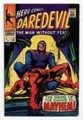 Tags: Marvel Legacy Numbering: Daredevil (part 36), Daredevil$21.00Cover pencils by Gene Colan, inks by Paul Reinman. The Name of the Game Is Mayhem!, script by Stan Lee, pencils by Gene Colan, inks by Frank Giacoia; DD saves the Invisible Girl from the Trapster, but in the ensuing battle, hurts his back as he takes down the villain; Foggy is asked to run for District Attorney; Debbie Harris is paroled from prison and contacts Foggy; Dr. Doom shows up. Cover price $0.12.