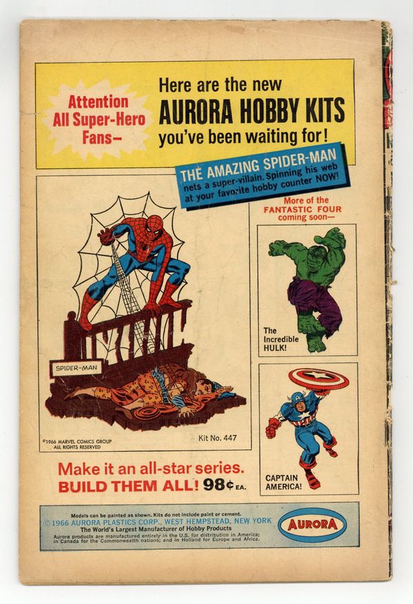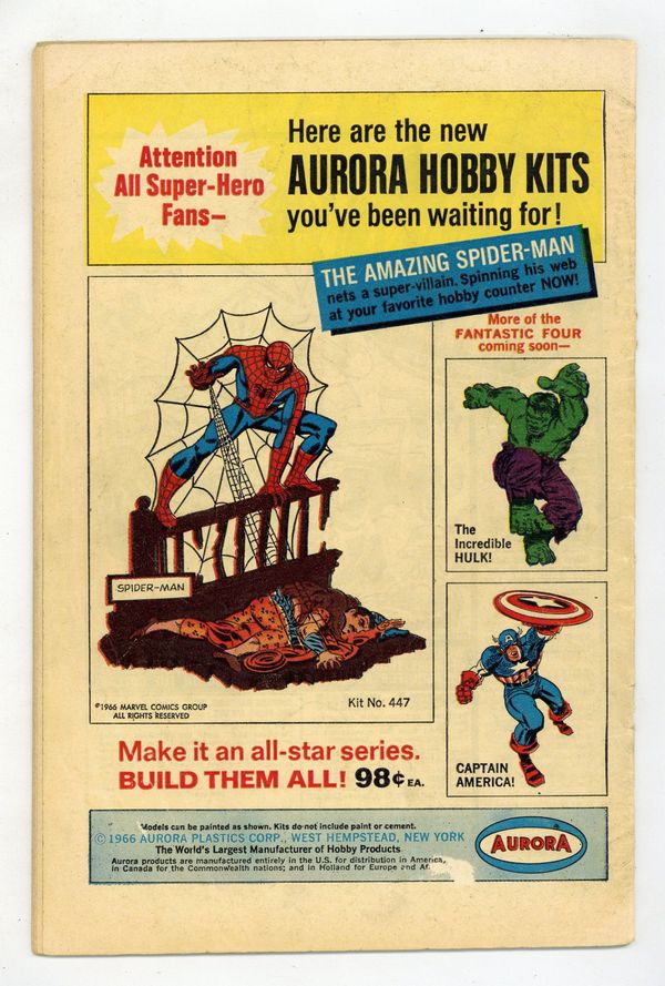 Cover by John Romita Sr.. First appearance of the Shocker in "The Sinister Shocker," script by Stan Lee, art by John Romita Sr.; Peter moves in with Harry and is confronted by the Shocker for the first time; Shocker brutalizes Spider-Man, but the Webslinger defeats him with his webs; once at Harrys, Peter doesn't feel happy, although he doesn't know why. Reprinted in Marvel Tales # 186. 36 pgs., full color. $0.12. Cover price $0.12.