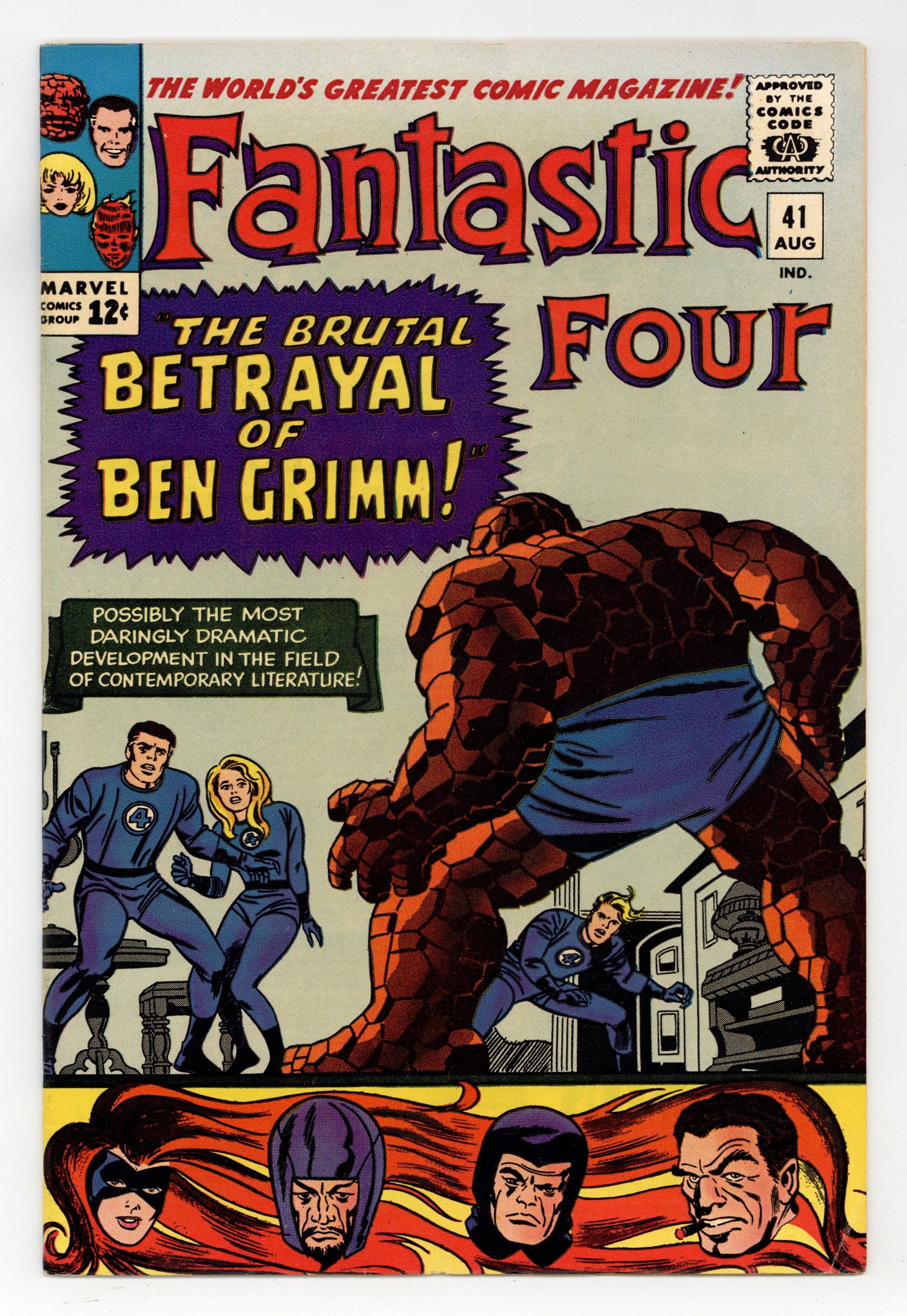 Ends Mar 2 8:09 PM CST Bid History 8 bids Current Bid $46 Your Secret Max Bid If you'd like to bid, please log in or register. Cover pencils by Jack Kirby, inks by Frank Giacoia. The Brutal Betrayal of Ben Grimm!, script by Stan Lee, pencils by Jack Kirby, inks by Vince Colletta; The Frightful Four kidnap the Thing and brainwash him into aiding them against the rest of the FF. 36 pgs. $0.12. Cover price $0.12.
