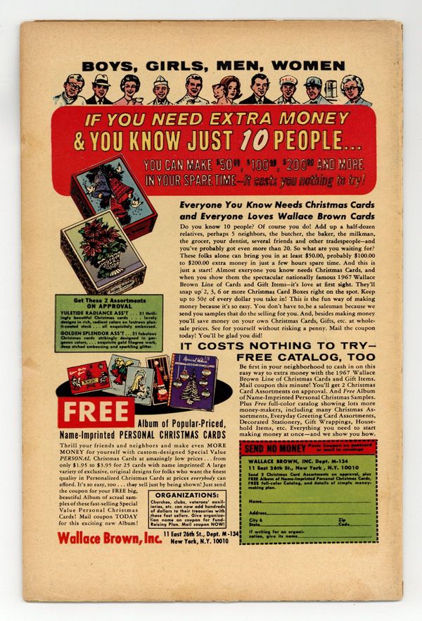 Tags: Fantastic Four$37.001st printing. Cover pencils by Jack Kirby, inks by Joe Sinnott. The origin of Him (Warlock), part 1 (though he does not appear in this issue) in "What Lurks Behind the Beehive?", script by Stan Lee and Jack Kirby (co-plot), pencils by Jack Kirby, inks by Joe Sinnott; The scientists of the Beehive have kidnapped Alicia Masters and the FF search for her. 36 pgs. $0.12. NOTE: 1994 JC Penney reprint exists. Can be identified by having a Stridex ad on the back cover. Cover price $0.12.