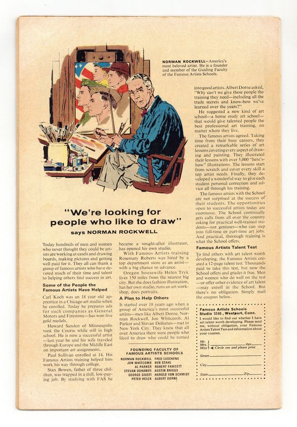 Tags: Fantastic Four$18.00Cover pencils by Jack Kirby, inks by Joe Sinnott. His Mission: Destroy the Fantastic Four!, script by Stan Lee and Jack Kirby (co-plot), pencils by Jack Kirby, inks by Joe Sinnott; A mysterious villain, posing as the chemist Dr. Santini, aids Reed in attempting to find a cure for Ben. Crystal (of the Inhumans) appearance. 36 pgs. $0.12. Cover price $0.12.