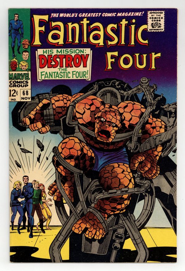 Ends Dec 8 8:18 PM CST Bid History 7 bids Current Bid $15 Your Secret Max Bid If you'd like to bid, please log in or register. Cover pencils by Jack Kirby, inks by Joe Sinnott. His Mission: Destroy the Fantastic Four!, script by Stan Lee and Jack Kirby (co-plot), pencils by Jack Kirby, inks by Joe Sinnott; A mysterious villain, posing as the chemist Dr. Santini, aids Reed in attempting to find a cure for Ben. Crystal (of the Inhumans) appearance. 36 pgs. $0.12. Cover price $0.12.