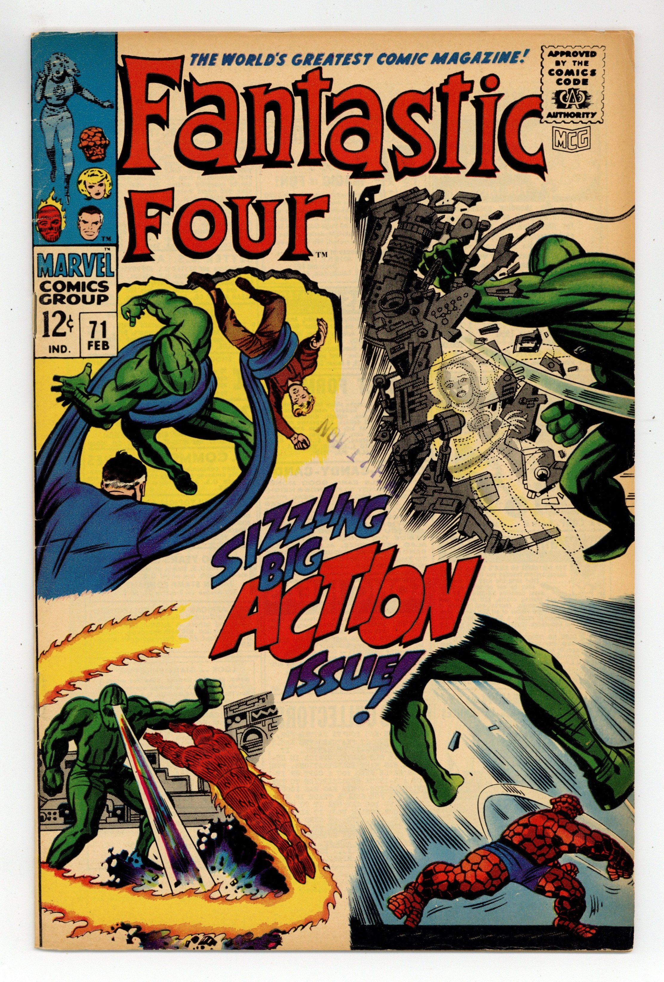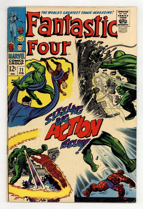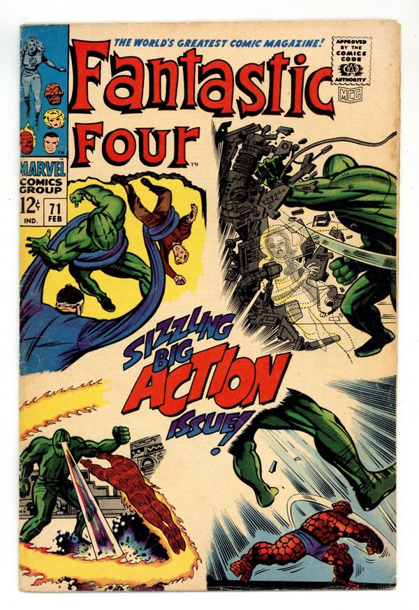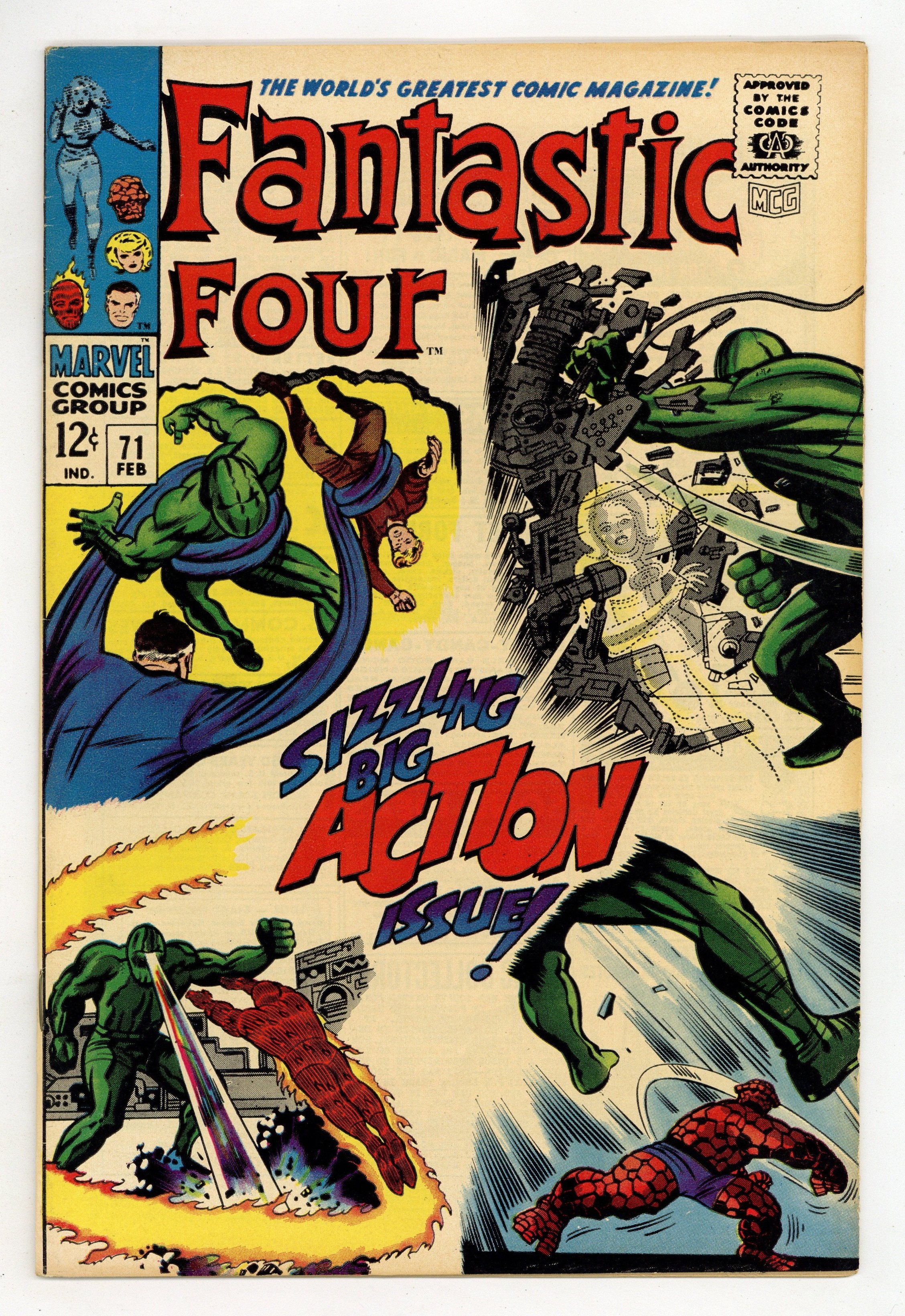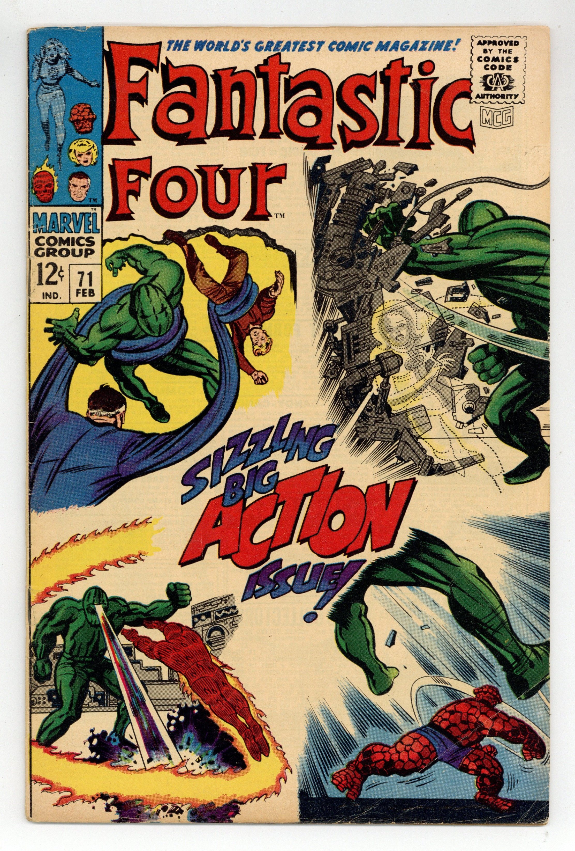 Cover pencils by Jack Kirby, inks by Joe Sinnott. ...and So It Ends..., script by Stan Lee; Jack Kirby (co-plot), pencils by Jack Kirby, inks by Joe Sinnott; Ben, with his mind restored helps the others defeat the Thinker's android. Crystal (of the Inhumans) appearance. 36 pgs. $0.12. Cover price $0.12.
