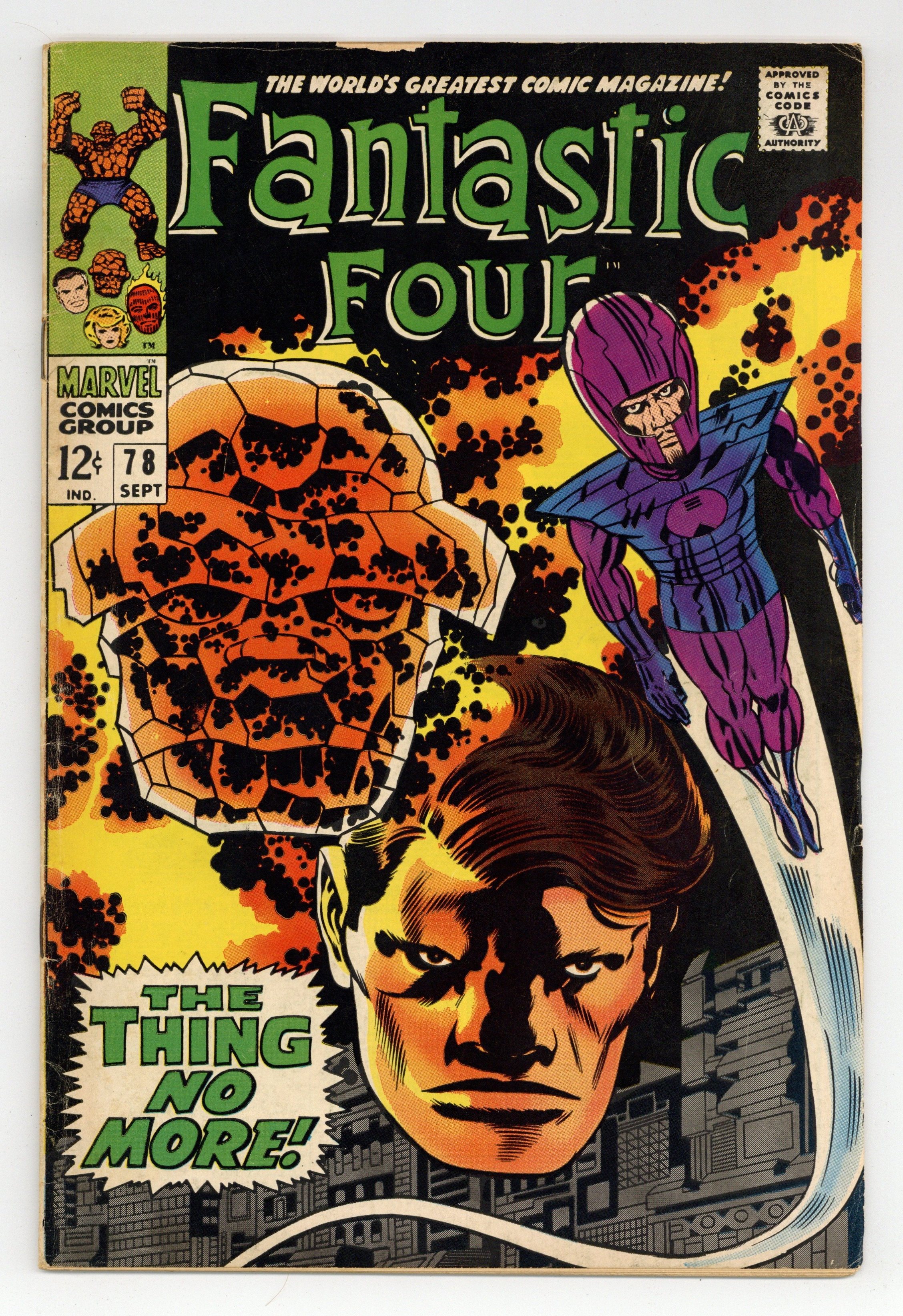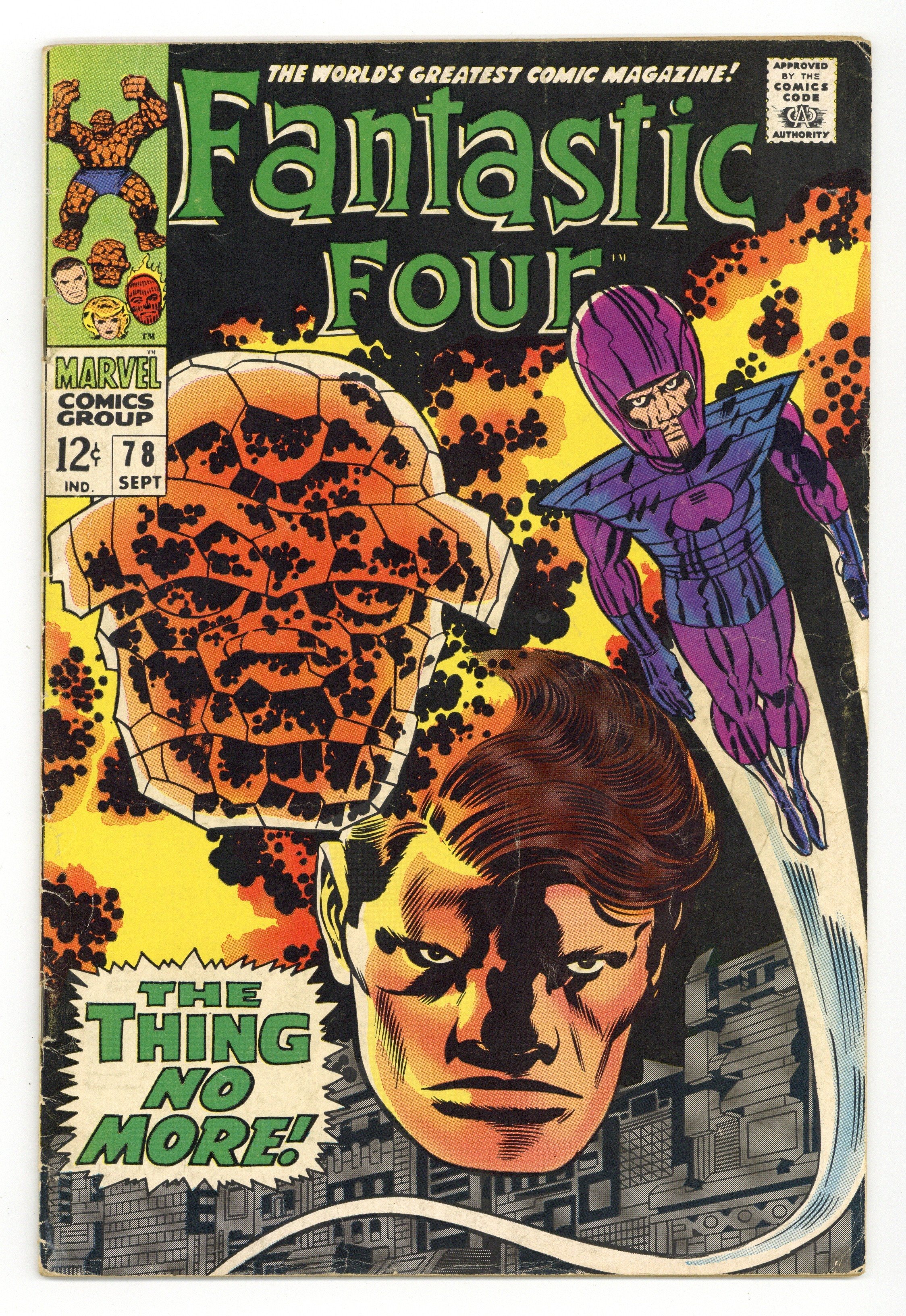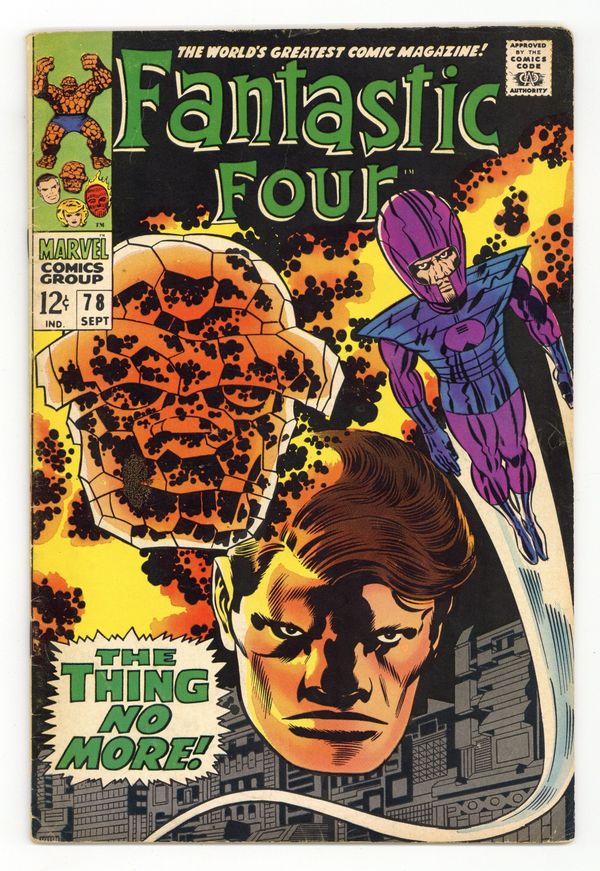 "The Thing No More!" Written by Stan Lee and Jack Kirby (co-plot). Pencils by Jack Kirby. Inks by Joe Sinnott. Cover pencils by Jack Kirby, inks by Joe Sinnott. The Wizard attacks the Baxter Building as Sue's doctors determine that everything is not well with her pregnancy. Crystal (of the Inhumans) appearance. Reprinted in Marvel's Greatest Comics # 60. 36 pgs. Cover price $0.12.