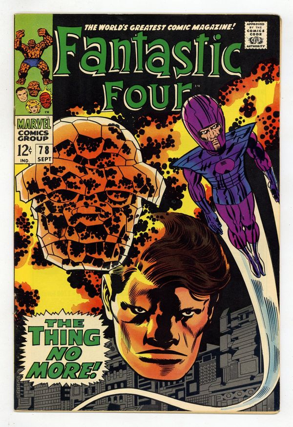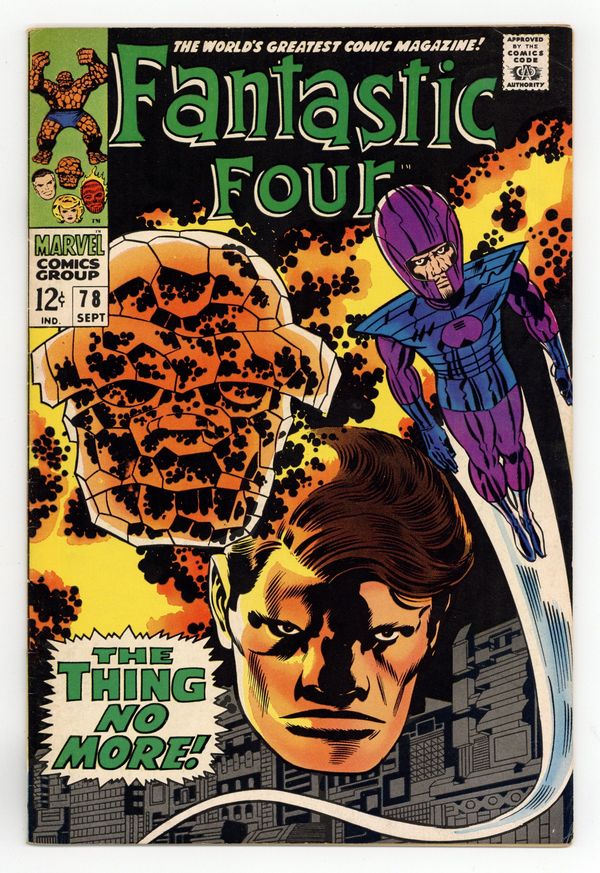 Tags: Fantastic Four$22.00"The Thing No More!" Written by Stan Lee and Jack Kirby (co-plot). Pencils by Jack Kirby. Inks by Joe Sinnott. Cover pencils by Jack Kirby, inks by Joe Sinnott. The Wizard attacks the Baxter Building as Sue's doctors determine that everything is not well with her pregnancy. Crystal (of the Inhumans) appearance. Reprinted in Marvel's Greatest Comics # 60. 36 pgs. Cover price $0.12.