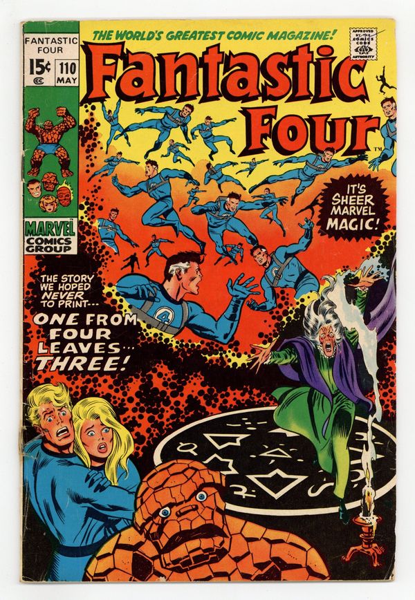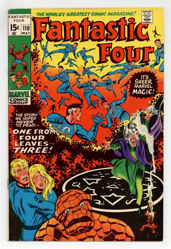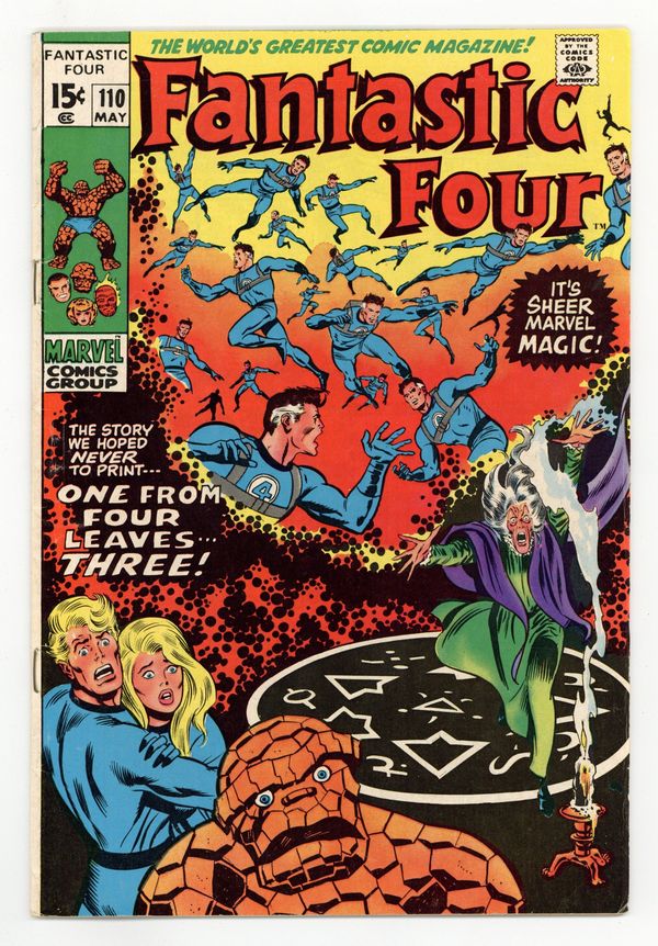 Tags: Fantastic Four$23.00Corrected color version (The Thing is not green, etc.). "One From Four Leaves Three!" Script by Stan Lee. Pencils by John Buscema. Inks by Joe Sinnott. Cover by John Buscema and Joe Sinnott. Reed Richards is trapped in the Negative Zone, along with the revitalized Annihilus! Fortunately, Agatha Harkness arrives at the Baxter Building in the nick of a time! Could young Franklin's nanny suddenly become the savior of the universe? Meanwhile, Ben Grimm has been acting very strange since he gained the ability to change back and forth to the Thing. Is something amiss with the blue-eye idol of millions?Cameo appearances by J. Jonah Jameson and Joe Robertson. (Notes: Annihilus returns in Marvel Team-Up 2. This issue has a pink and green cover variant due to a printing error.) 36 pages Cover price $0.15.