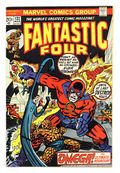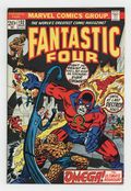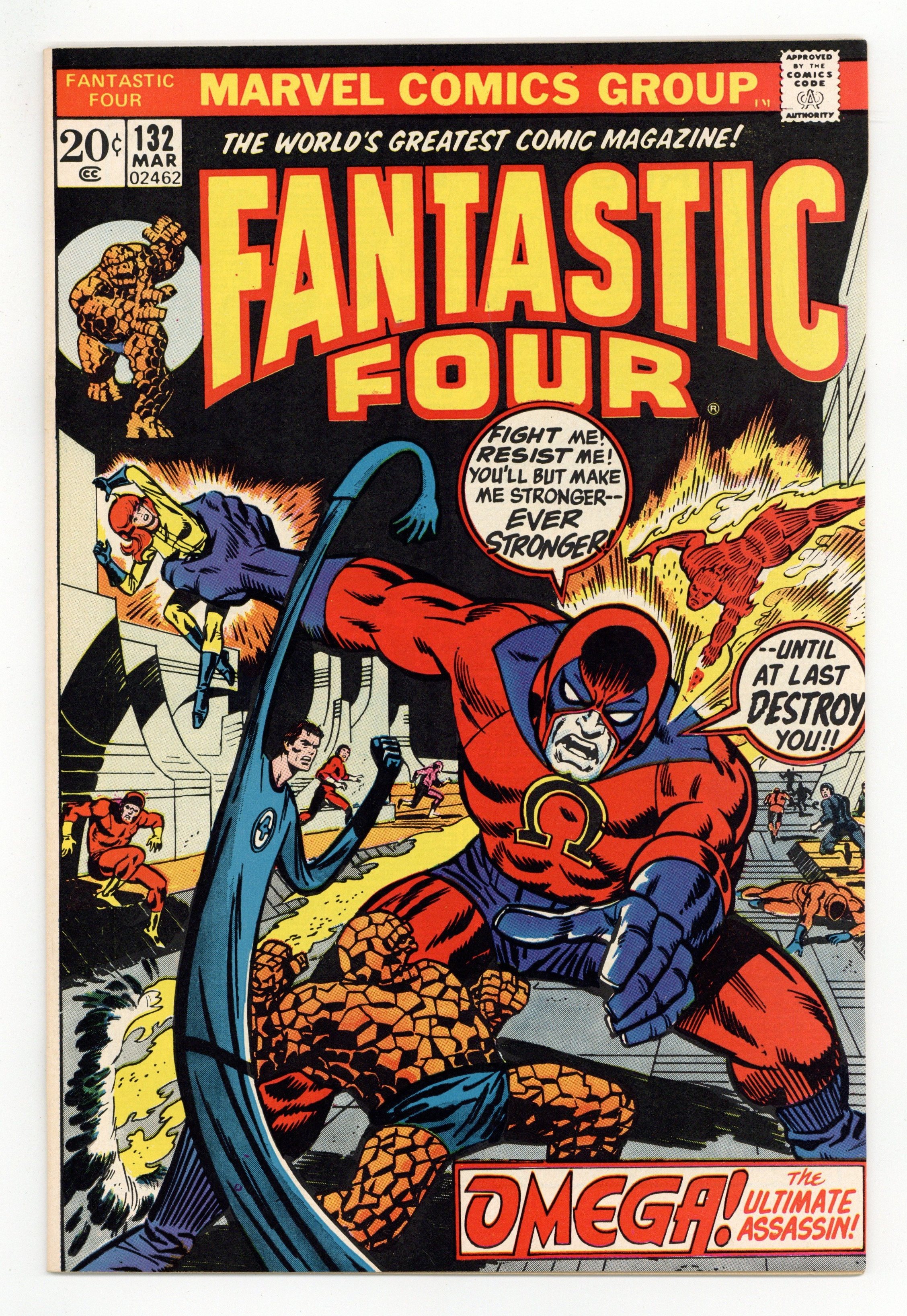 $18.00"Omega! The Ultimate Enemy!" Part 2 of 2. Guest-starring Quicksilver and the Inhumans. Script by Roy Thomas. Art by John Buscema (breakdowns) and Joe Sinnott (finishes). Cover by Jim Steranko and Frank Giacoia. In the underground lair of the Alpha Primitives, the awesome Omega has seized Crystal! And now the Human Torch and Quicksilver must join forces to set her free! However, the massive android is powerful indeed! It's going to take all of the Inhumans plus Mr. Fantastic and the Thing to stop the invasion of the Alpha Primitives! Can the FF and the royal family defeat the Alphas and Omega? But even if the heroes win, Johnny Storm is still going to lose. (Notes: The Human Torch changes his costume from blue to red in this issue, and Medusa joins the Fantastic Four (through issue 159). The letters page contains a statement of ownership: average print run 457,990; average paid circulation 245,695.) 36 pages Cover price $0.20.
