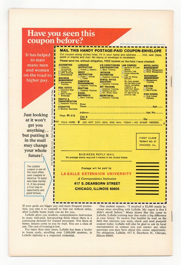 "Omega! The Ultimate Enemy!" Part 2 of 2. Guest-starring Quicksilver and the Inhumans. Script by Roy Thomas. Art by John Buscema (breakdowns) and Joe Sinnott (finishes). Cover by Jim Steranko and Frank Giacoia. In the underground lair of the Alpha Primitives, the awesome Omega has seized Crystal! And now the Human Torch and Quicksilver must join forces to set her free! However, the massive android is powerful indeed! It's going to take all of the Inhumans plus Mr. Fantastic and the Thing to stop the invasion of the Alpha Primitives! Can the FF and the royal family defeat the Alphas and Omega? But even if the heroes win, Johnny Storm is still going to lose. (Notes: The Human Torch changes his costume from blue to red in this issue, and Medusa joins the Fantastic Four (through issue 159). The letters page contains a statement of ownership: average print run 457,990; average paid circulation 245,695.) 36 pages Cover price $0.20.