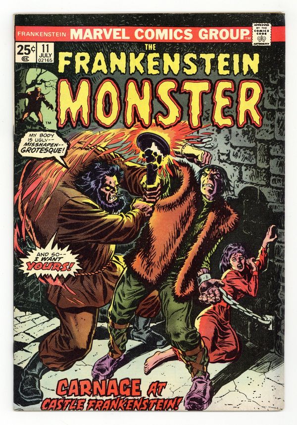 There's carnage at Castle Frankenstein in "And in the end--?!" Script by Gary Friedrich, pencils by Bob Brown, inks by Vince Colletta. Back-up reprint, "The Mad Scientist!" The letters page contains a Marvel Value Stamp Series A # 12 (Daredevil by John Romita Sr.). Cover price $0.25.