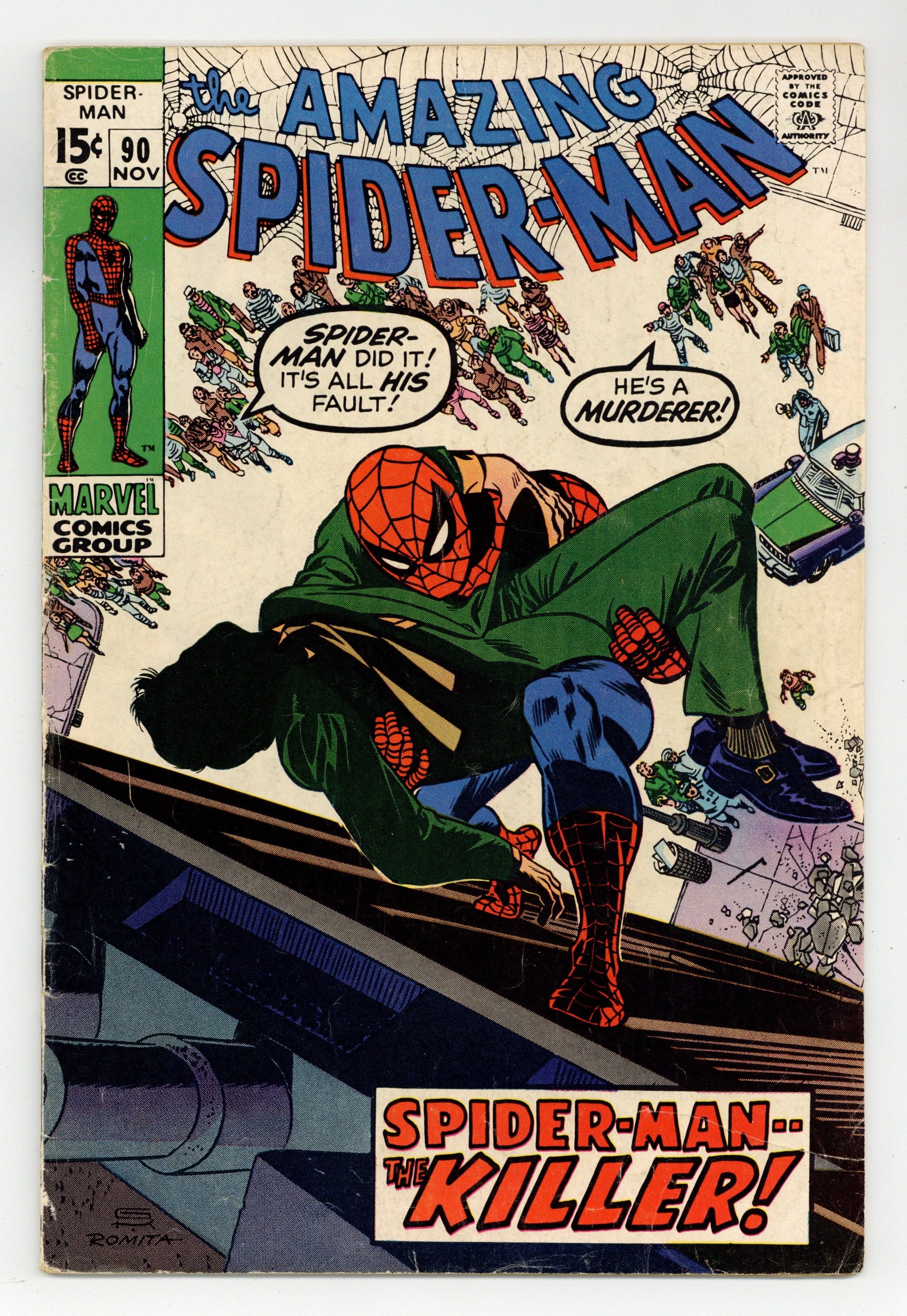 Tags: Marvel Legacy Numbering: Amazing Spider-Man (part 90), Spider-Man$54.00Death of Captain Stacy in "And Death Shall Come!" Part 3 of 3. Script by Stan Lee. Pencils by Gil Kane. Inks by John Romita. Cover by Gil Kane and John Romita. It's the third and final showdown between Doctor Octopus and the Amazing Spider-Man...in just as many days! However this time thewall-crawler has a special surprise for Doc Ock -- that might foul up his control of his mechanical arms! When the web-slinger and Dr. Octopus meet again in a rooftop clash, a crowd gathers below. Tragically, Doc Ock knocks the chimney off the roof...and it falls toward a young boy! However inheroic fashion, Captain Stacy saves the boy, but at a terrible cost to himself. Spider-Man rushes to help Gwen's father, but Captain Stacy's fate has been sealed. A sorrowful ending for all. Cameo appearances by GwenStacy and Harry Osborn. (Notes: This Lee-Kane-Romita masterpiece was reprinted in Marvel Tales #71. The Spider-Man Death & Destiny (2000) limited series (by Lee Weeks) expands upon the aftermath of Captain Stacy's death.) 36 pages. Cover price $0.15.