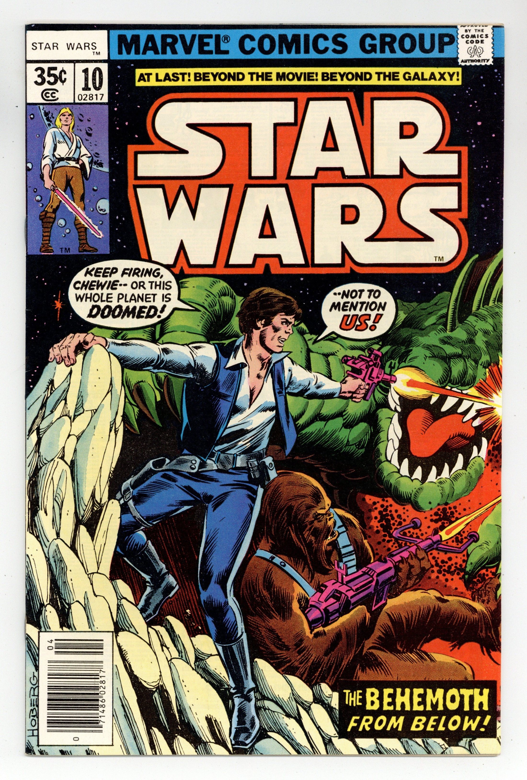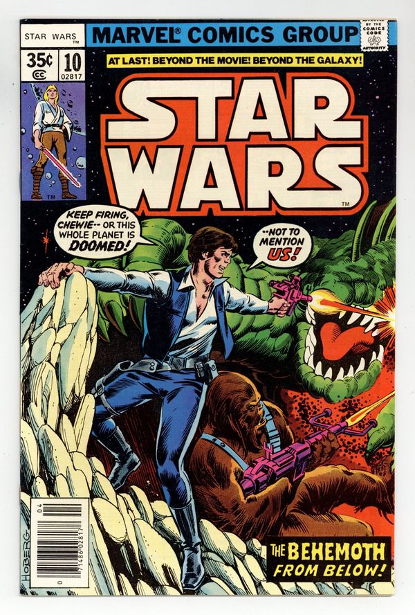 Tags: Star Wars$18.251st printing Newsstand. "Behemoth from the World Below!" Written by Roy Thomas and Howard Chaykin. Art by Howard Chaykin and Tom Palmer. As if things weren't bad enough, now Han must contend with a prehistoric monstrosity from the very bowels of the earth. Meanwhile, the young hero, Luke Skywalker, has gone missing, and Princess Leia is determined to find him at any cost. Cover price $0.35.
