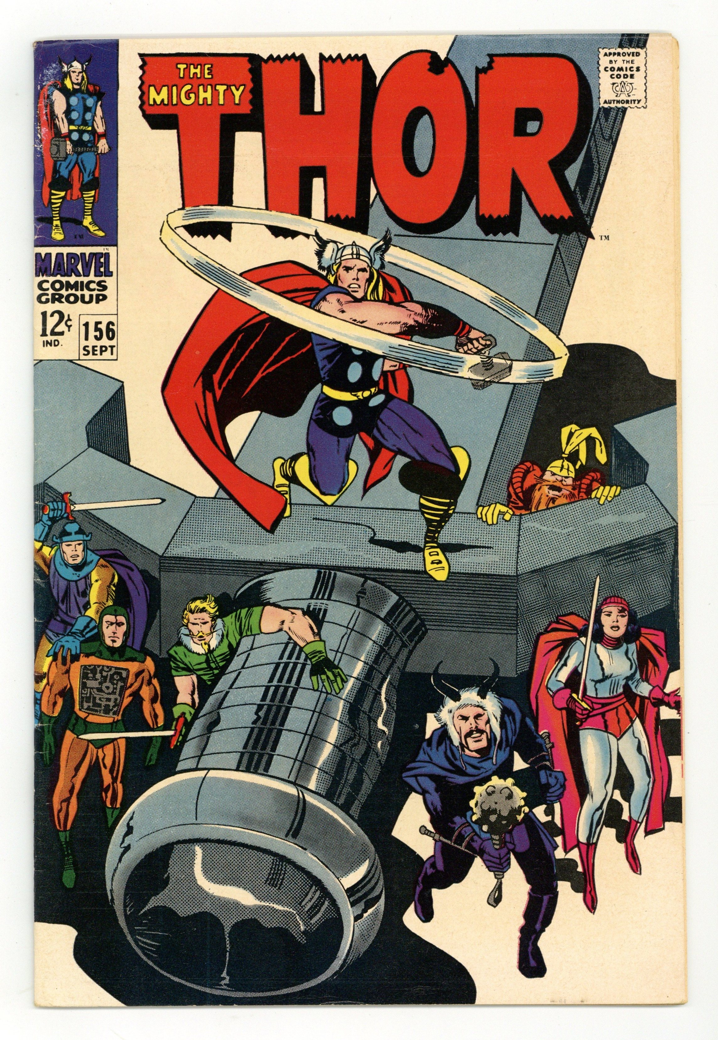 Tags: Marvel Legacy Numbering: Thor (part 156), Thor$19.50Thor faces Mangog and Loki in "The Hammer and the Holocaust!" Script by Stan Lee, pencils by Jack Kirby, inks by Vince Colletta. Appearances by Balder, Sif, Karnilla, Hogun, Fandral, Volstagg, Heimdall, the Recorder, and Odin. Kirby/Colletta cover. 36 pages, full color. Cover price $0.12.