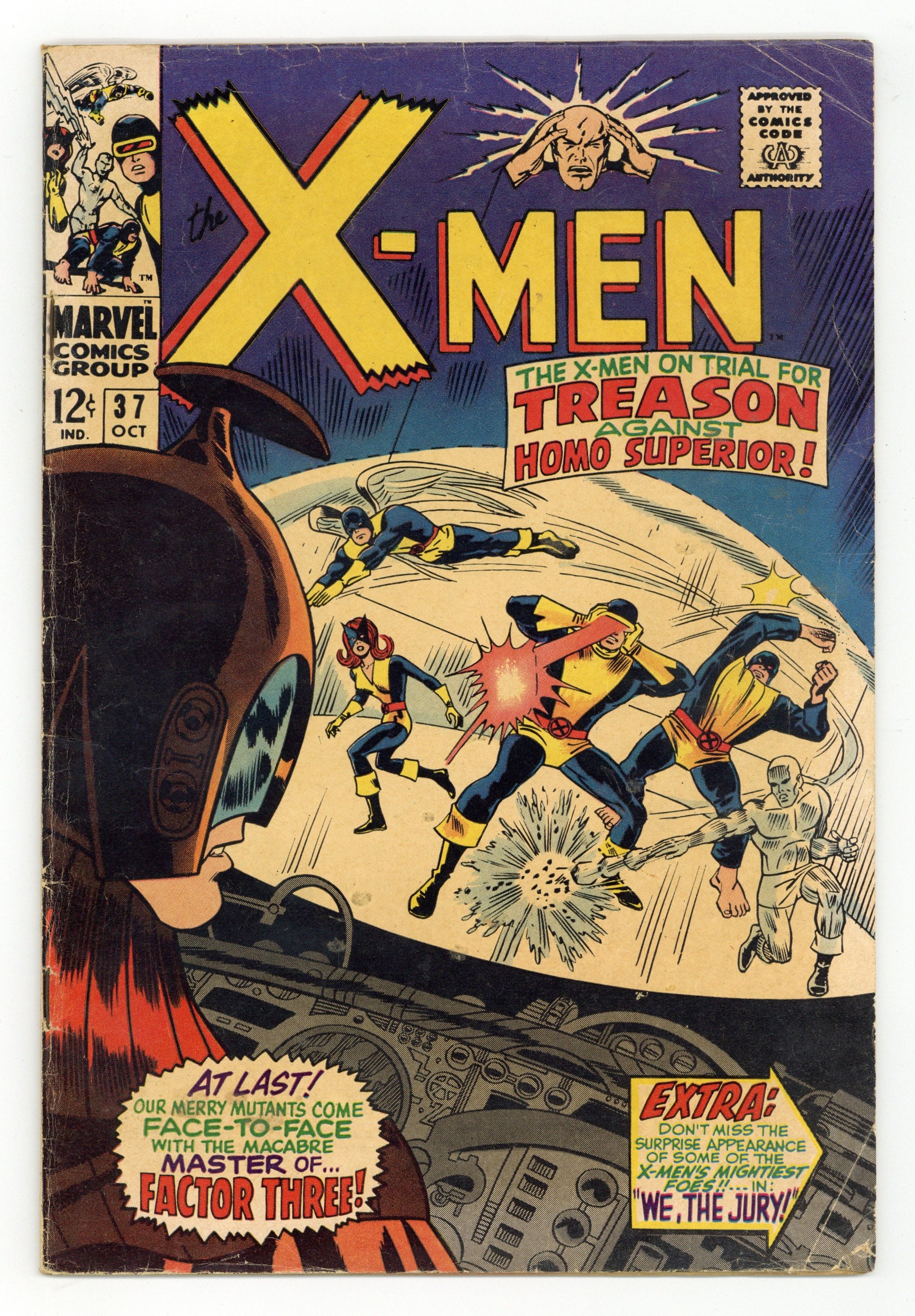 Tags: X-Men$58.00First appearance of the Mutant-Master. Cover pencils by Don Heck, John Verpoorten, and John Romita (alterations), inks by John Verpoorten and John Romita (alterations). We, the Jury..., script by Roy Thomas, pencils by Ross Andru, inks by Don Heck; the X-Men battle the Factor Three in Europe; the Mutant-Master holds Professor X and Banshee captive; Juggernaut cameo. Letter to the editor from writer Peter Sanderson. 36 pgs. $0.12. Cover price $0.12.