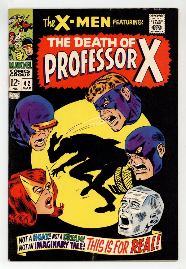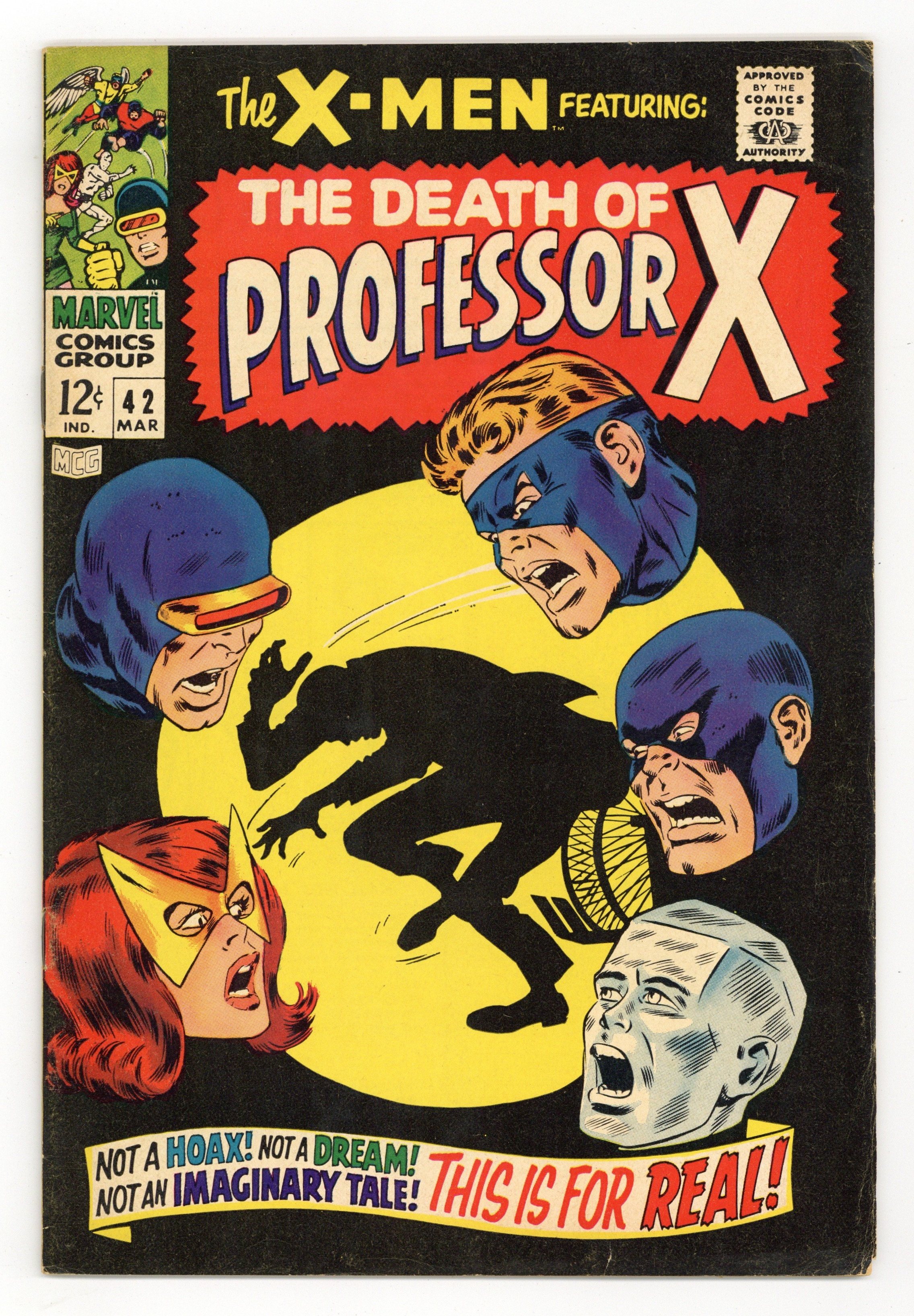 Tags: Print Run Statistics, X-Men$66.00Cover art by John Buscema. If I Should Die...!, script by Roy Thomas, pencils by Don Heck, inks by George Tuska; the X-Men battle Grotesk the Sub-Human. The End...Or the Beginning?--The Origins of the Uncanny X-Men, script by Roy Thomas, pencils by Werner Roth, inks by Herb Trimpe; Cyclops origin conclusion, the Living Diamond dies; includes Professor X. This issue contains a statement of ownership--average print run 445,763; average paid circulation 266,034. 36 pgs. $0.12. Cover price $0.12.