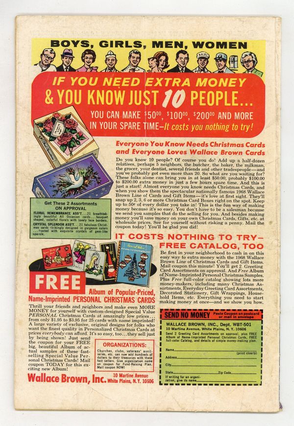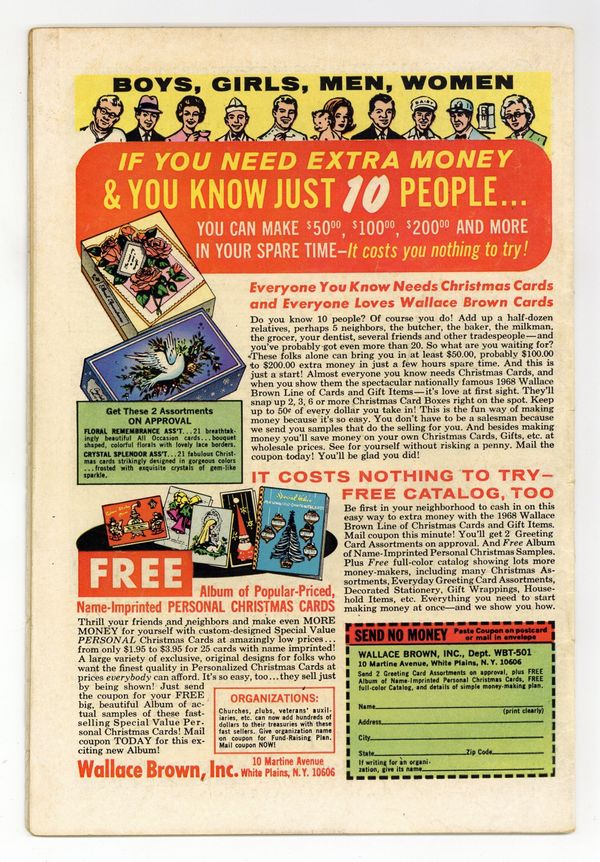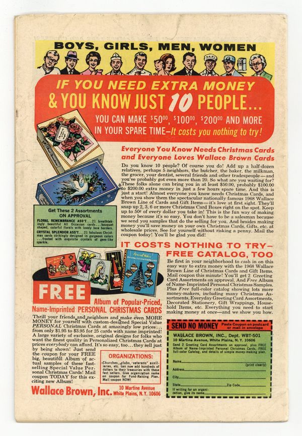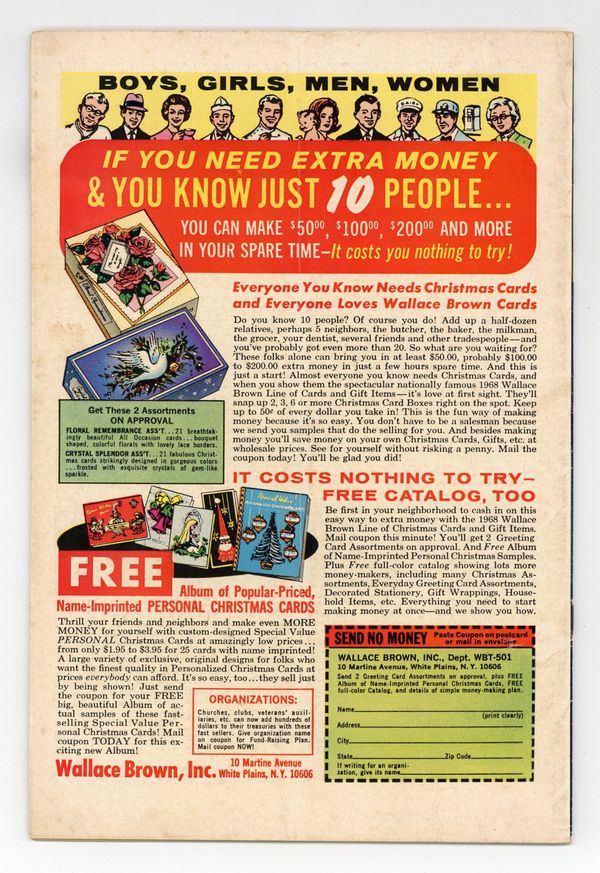 Tags: X-Men$17.00Cover pencils by John Romita, inks by Frank Giacoia. Beware Computo Commander of the Robot Hive!, script by Arnold Drake, pencils by Don Heck and Werner Roth, inks by John Verpoorten; Iceman and Beast go to California while Cyclops and Jean battle robots in New York; a giant robot named Computo makes small robot warriors; Quasimodo appears. Yours Truly the Beast, script by Arnold Drake, pencils by Werner Roth, inks by John Verpoorten; Beasts abilities explained. Letter to the editor from comic writer Tony Isabella. 36 pgs. $0.12. Cover price $0.12.