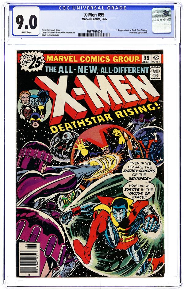 Ends Dec 8 9:52 PM CST Bid History 8 bids Current Bid $89 Your Secret Max Bid If you'd like to bid, please log in or register. "Deathstar, Rising!" Part 2 of 3. Story by Chris Claremont. Art by Dave Cockrum and Frank Chiaramonte. The new X-Men boldly go where no X-Men have gone before as their battle with the mutant hating Sentinels takes to the edge of space and beyond. But before they can stop the madman Steve Lang, the X-Men will come face-to-face with the last people they expected to see! 36 pgs. Cover price $0.25.