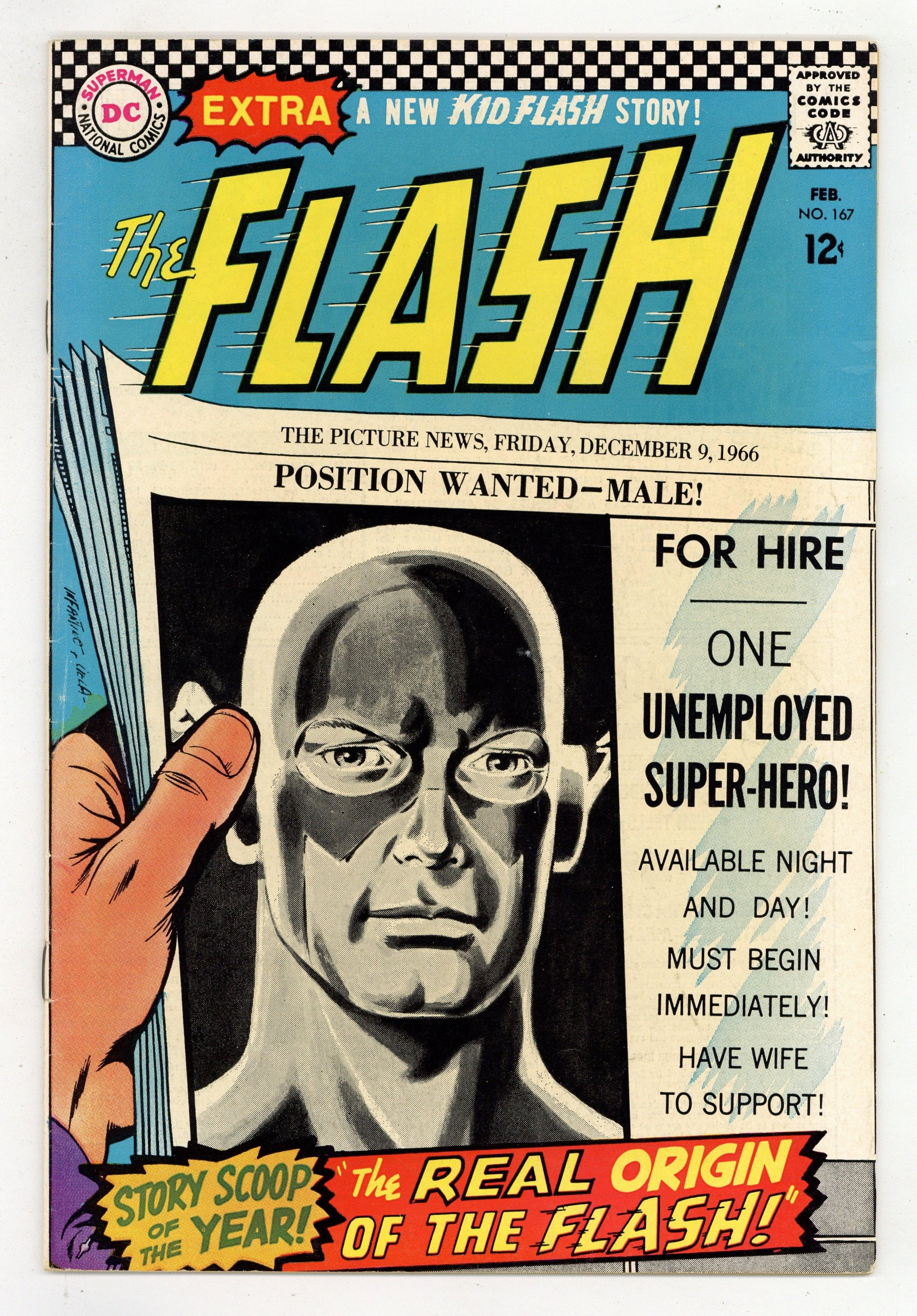 Cover pencils by Carmine Infantino, inks by Joe Giella. The Real Origin of the Flash!, script by Gardner Fox, pencils by Carmine Infantino, inks by Sid Greene; The Real Origin of the Flash; Sheds new light on the origin of the Flash by showing that a goofy angel (?) was behind the whole thing(??); this is the famous Mopee issue that was quickly rejected from Flash continuity. Batman 189 ad. Caps Hobby Hints strip by Henry Boltinoff. The Hypnotic Super-Speedster starring Kid Flash, script by Gardner Fox, pencils by Carmine Infantino, inks by Sid Greene; a hypnotist at Wallys school orders a kid to run around the world. Letter from super fan Peter Sanderson, Jr. G.I. Joe Club ad. 36 Pages, Full Color. Cover price $0.12.