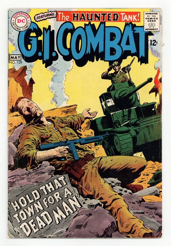 Cover by Russ Heath. Written by Robert Kanigher and Dave Wood. Art by Russ Heath and Jack Abel. Featuring the Haunted Tank in "Hold That Town for a Dead Man!" by Robert Kanigher and Russ Heath. Plus: "Combat Nightmare!" by Dave Wood and Jack Abel. 36 Pages, Full Color. Cover price $0.12.