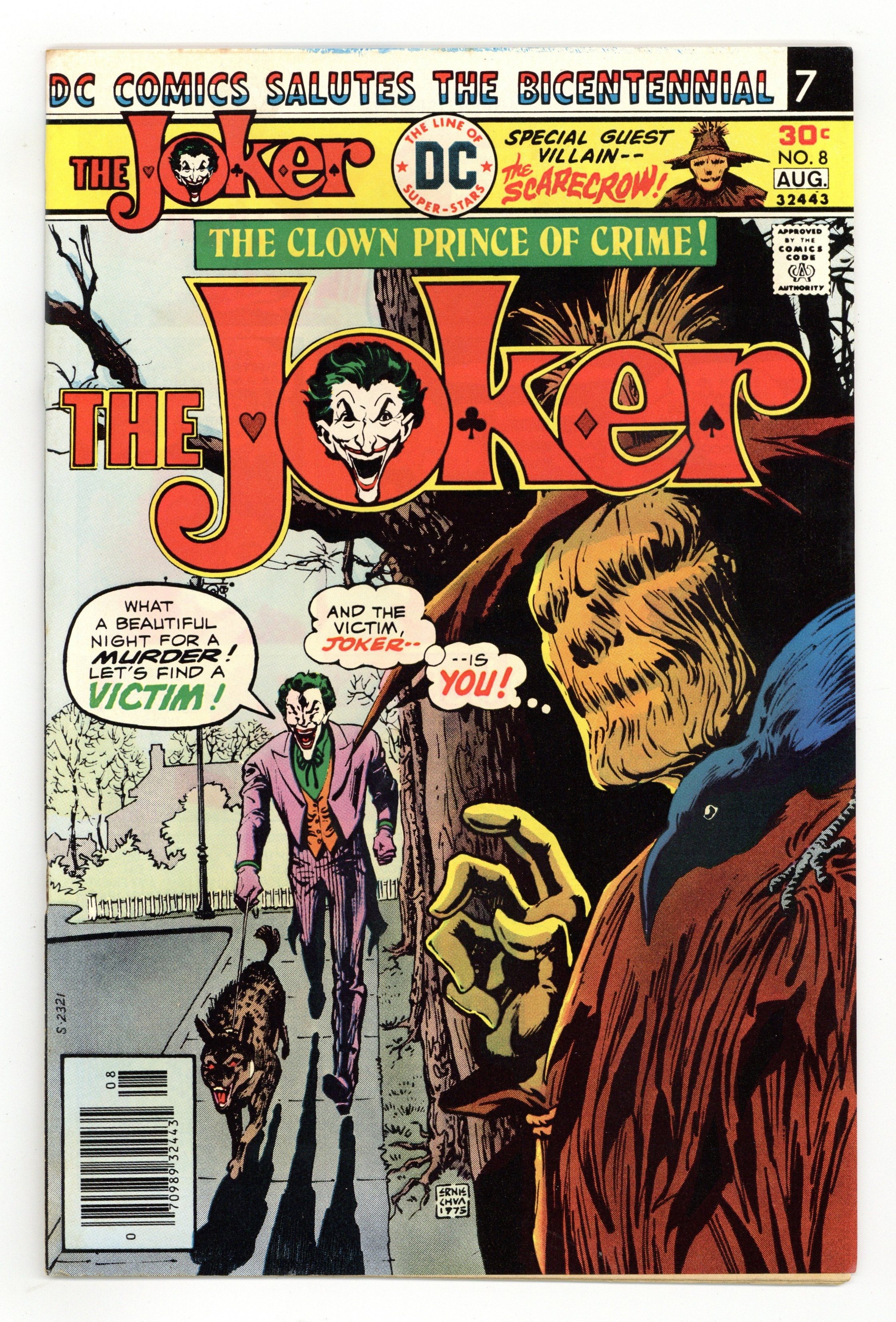Cover by Ernie Chan (as Ernie Chua). Featuring: 17 page Joker story "The Scarecrow's Fearsome Face-Off!" Characters: the Joker, the Scarecrow [Jonathan Crane], Southpaw (Joker's henchman), Tooth (Joker's henchman), Dr. Farr, Nightmare (Scarecrow's pet raven), Sonny November; Jerry (student). In this tale, when the Joker makes a robbery dressed as the Scarecrow, the real Scarecrow hunts him down to exact revenge. Written by Elliot S! Maggin, with art by Irv Novick and Tex Blaisdell. Cover price $0.30.