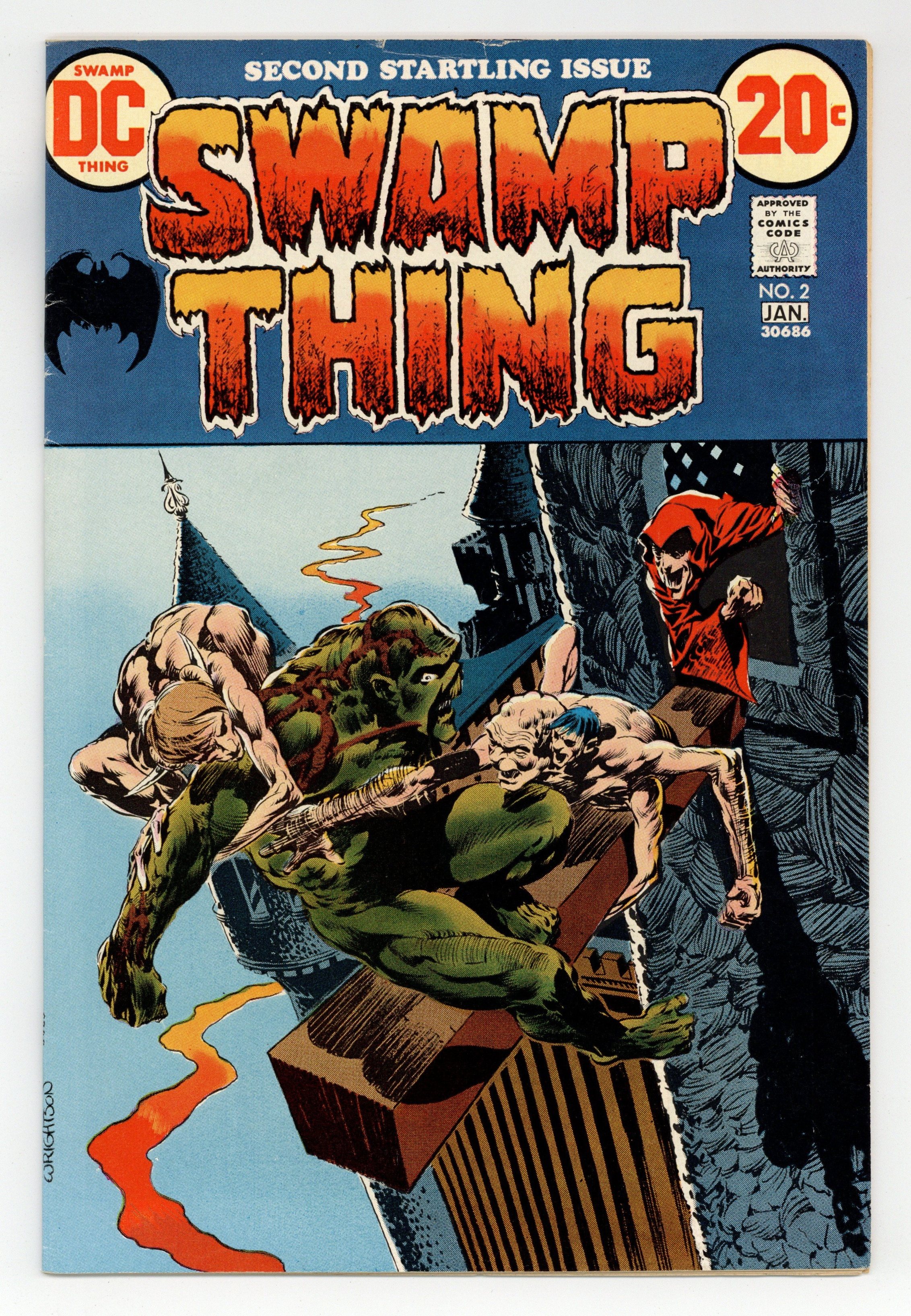 "The Man Who Wanted Forever." The Un-Men capture Swamp Thing (who is said to be 7' 3" in height and 547 pounds in this story) and take him to their creator, Dr. Anton Arcane, who wants to become a Swamp Thing himself. Script by Len Wein, art and cover by Berni Wrightson. Cover price $0.20.