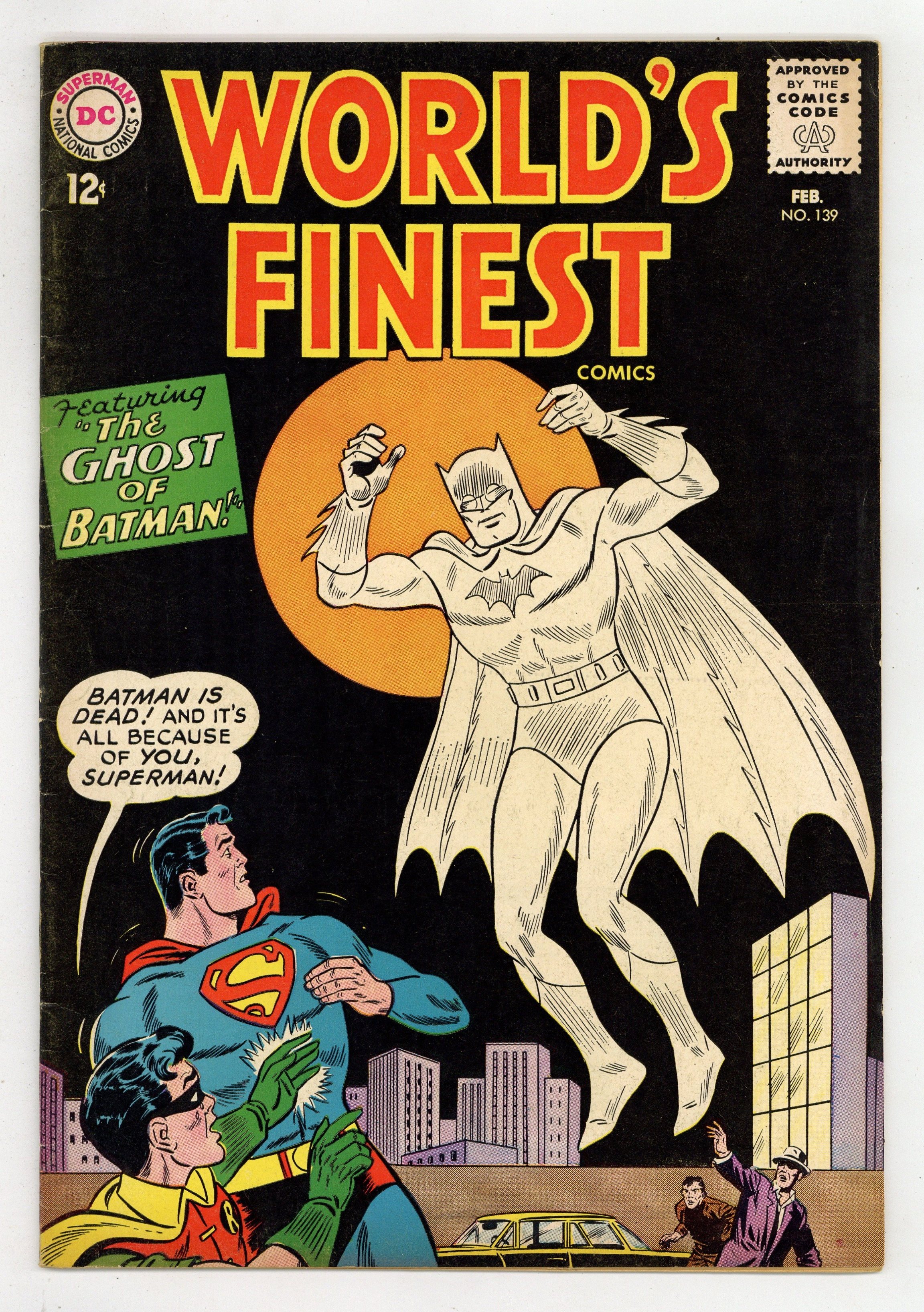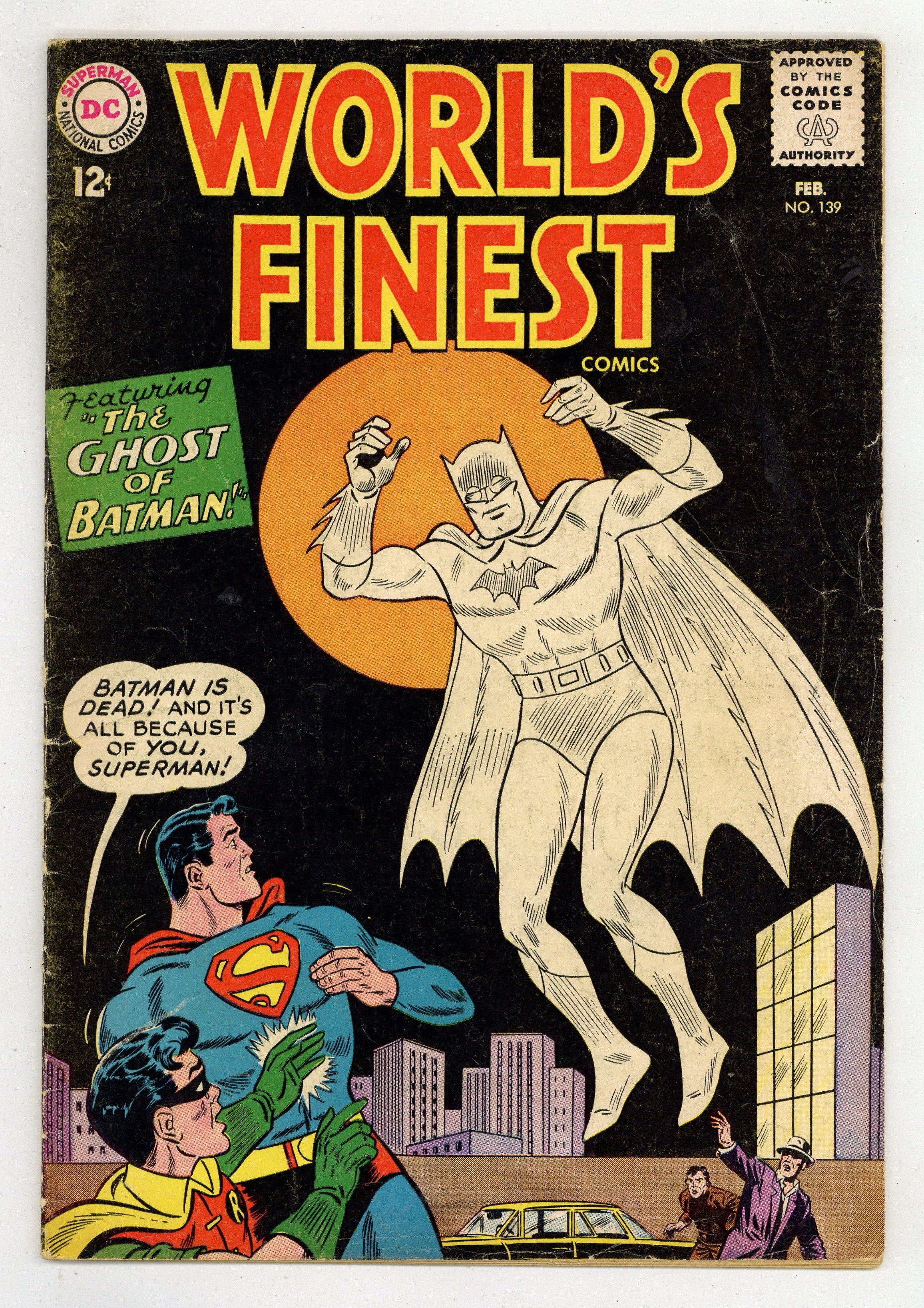 $20.50Cover pencils by Dick Dillin, inks by Sheldon Moldoff. The Ghost of Batman starring Superman and Batman, script by Dave Wood, pencils by Jim Mooney, inks by Sheldon Moldoff; Criminals seem to assasinate Batman while Superman is disguised as him; Now they can't reveal Batman is still alive without revealing his true identity. Special Christmas Quiz -- "Christmas in Many Lands!" public service announcement, script by Jack Schiff, art by Ruben Moreira. Ollie humor page by Henry Boltinoff. The Doom Hunters starring Aquaman, script by Jack Miller, art by Ramona Fradon. 36 Pages, Full Color. Cover price $0.12.