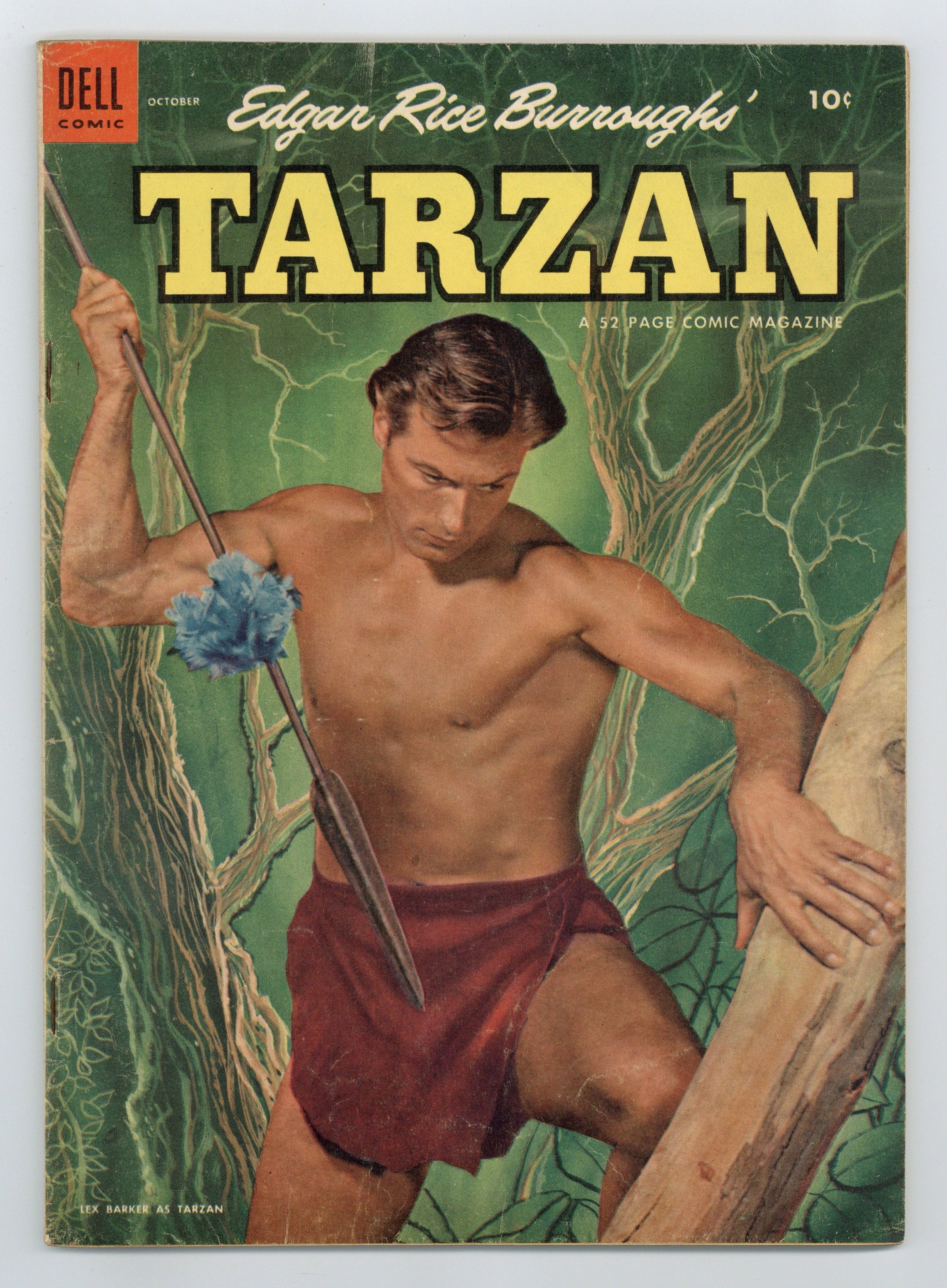 Lex Barker photo cover. "Tarzan Builds a Home," script by Gaylord Du Bois, art by Jesse Marsh; Young Prince Illonyi is injured by two hunters and taken to the city to be sold as a slave but Tarzan comes to his rescue. "Boy Meets Bolgani," script by Gaylord Du Bois, art by Jesse Marsh; Boy and Dombie battle a gorilla that is raiding Chief Buto's crops. "The Thipdar's Prey," script by Gaylord Du Bois, art by Jesse Marsh; Tarzan and Dr. MacWhirtle travel to the Valley of Monsters to retrieve some Pteranodon eggs for scientific study. "Reunion" text story starring Mabu. Untitled Brothers of the Spear story, script by Gaylord Du Bois, art by Russ Manning; Dan-El and Natongo learn of the death of General Kongoni. Nagopa and Han-Ool escape from the dungeon where Dan-El had them placed. The Thipdars of Pal-Ul-Don illustration by Jesse Marsh. 52 pages, full color. Cover price $0.10.