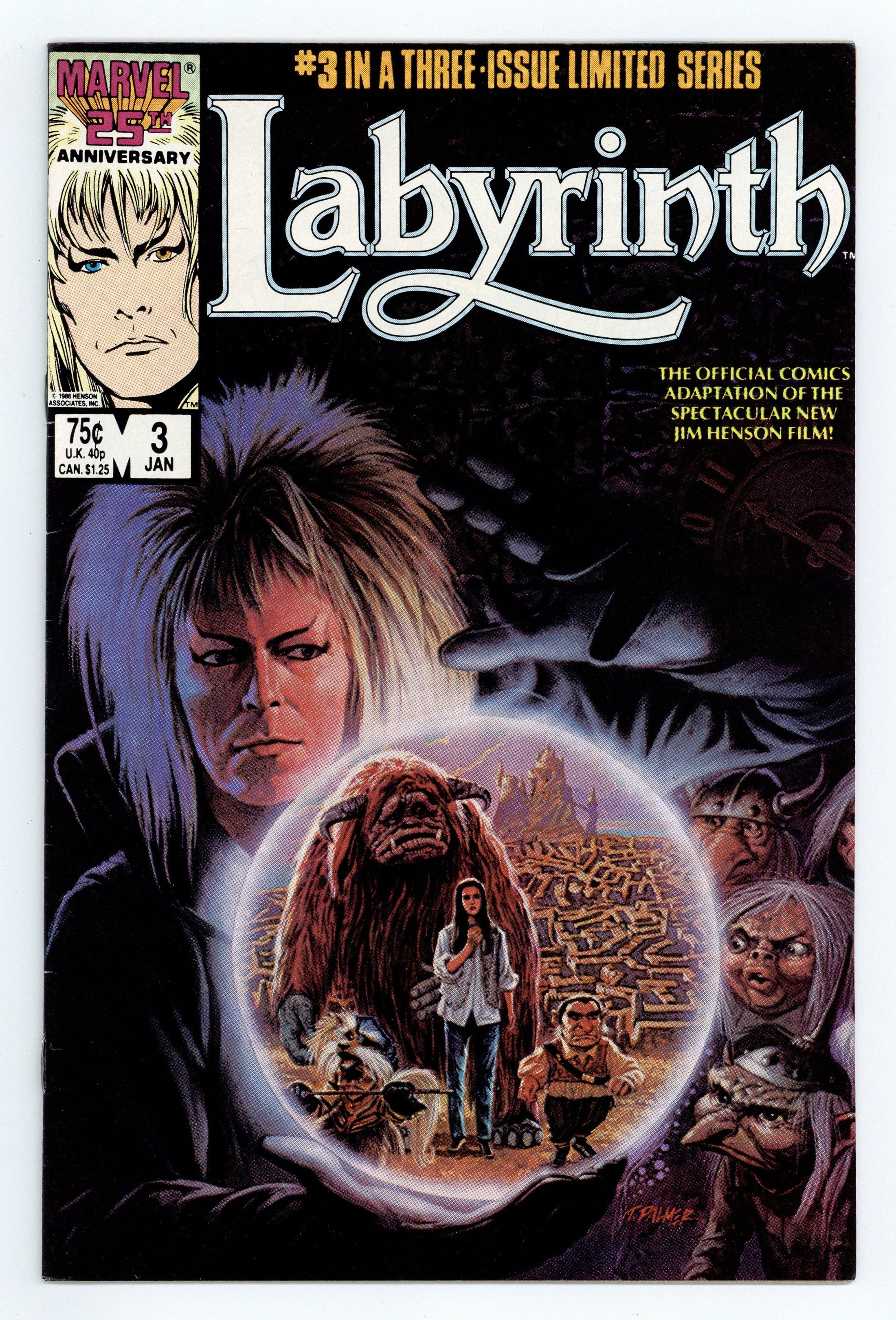 $20.00Script by Sid Jacobson. Art by John Buscema and Romeo Tanghal. Cover by Tom Palmer. The stunning comics adaptation of the spectacular Jim Henson fantasy film starring David Bowie and Jennifer Connelly concludes! Sarah finds her baby brother, but how can she get him out of the terrible realm of the trolls alive? 32 pages, full color. Cover price $0.75.