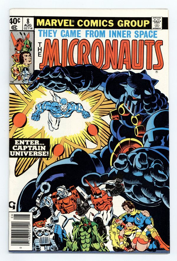 $22.50In "Earth Wars!", Argon becomes Force Commander; Ray Coffin becomes Captain Universe; Captain Universe and the Micronauts vs. Karza at HELL. Introduction/first appearance of Captain Universe. Written by Bill Mantlo, with art by Michael Golden and Bob McLeod. Cover by Michael Golden. Cover price $0.40.
