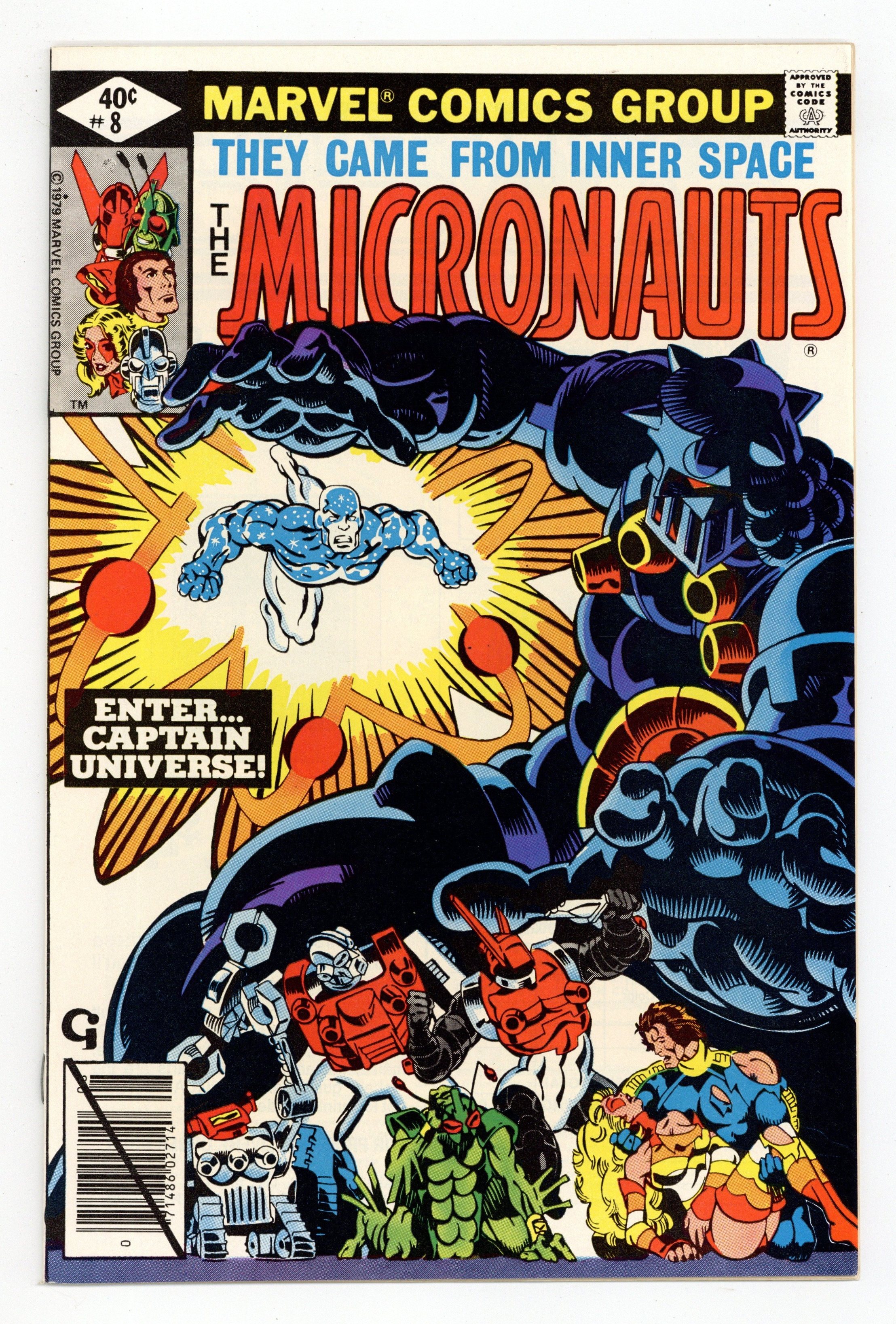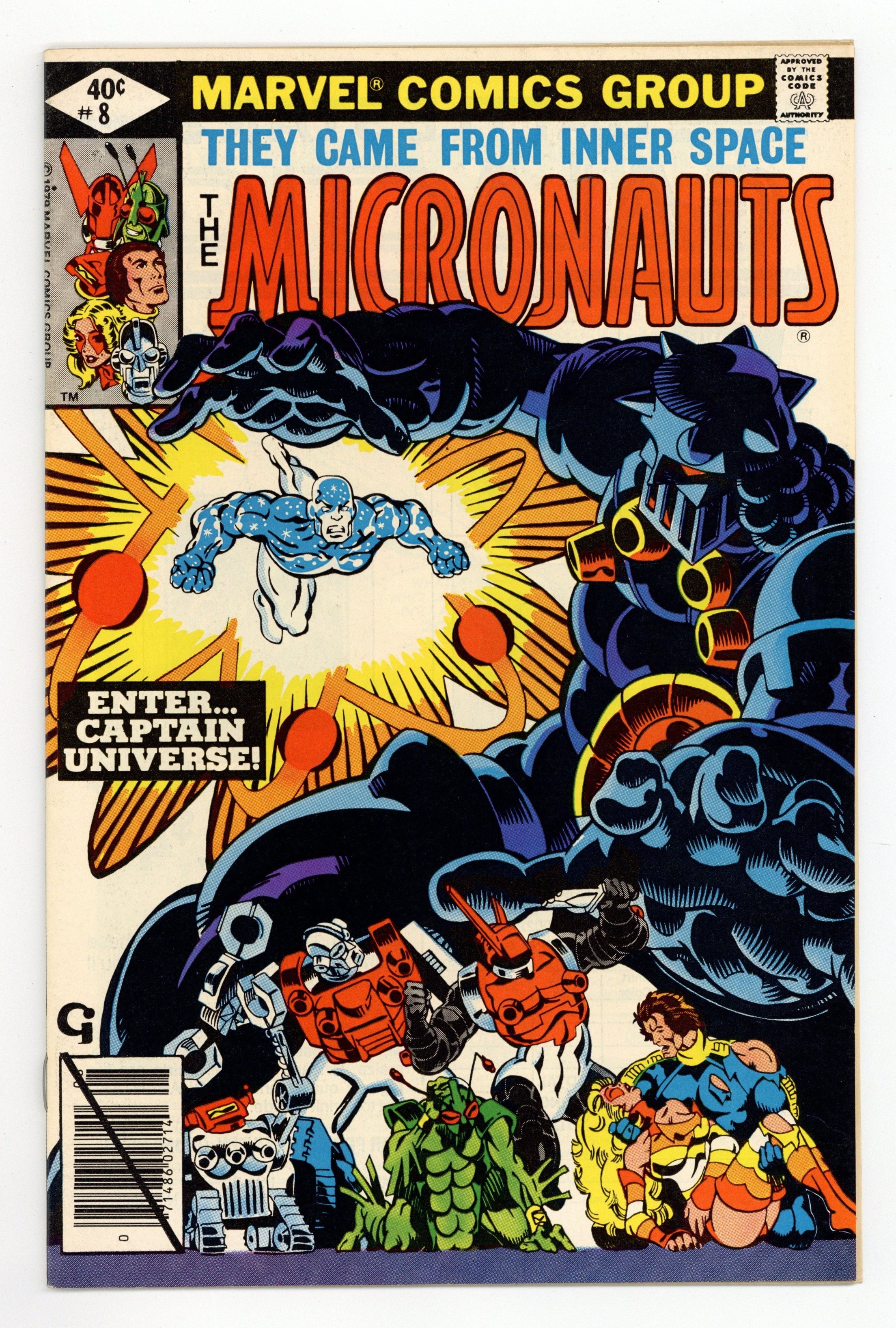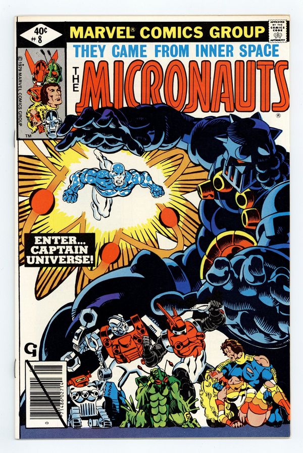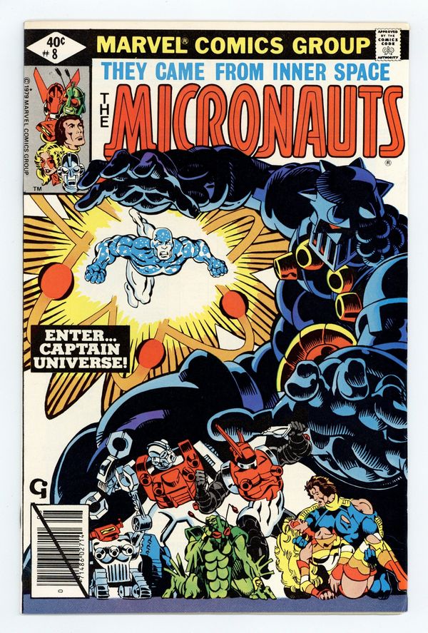 $18.50In "Earth Wars!", Argon becomes Force Commander; Ray Coffin becomes Captain Universe; Captain Universe and the Micronauts vs. Karza at HELL. Introduction/first appearance of Captain Universe. Written by Bill Mantlo, with art by Michael Golden and Bob McLeod. Cover by Michael Golden. Cover price $0.40.