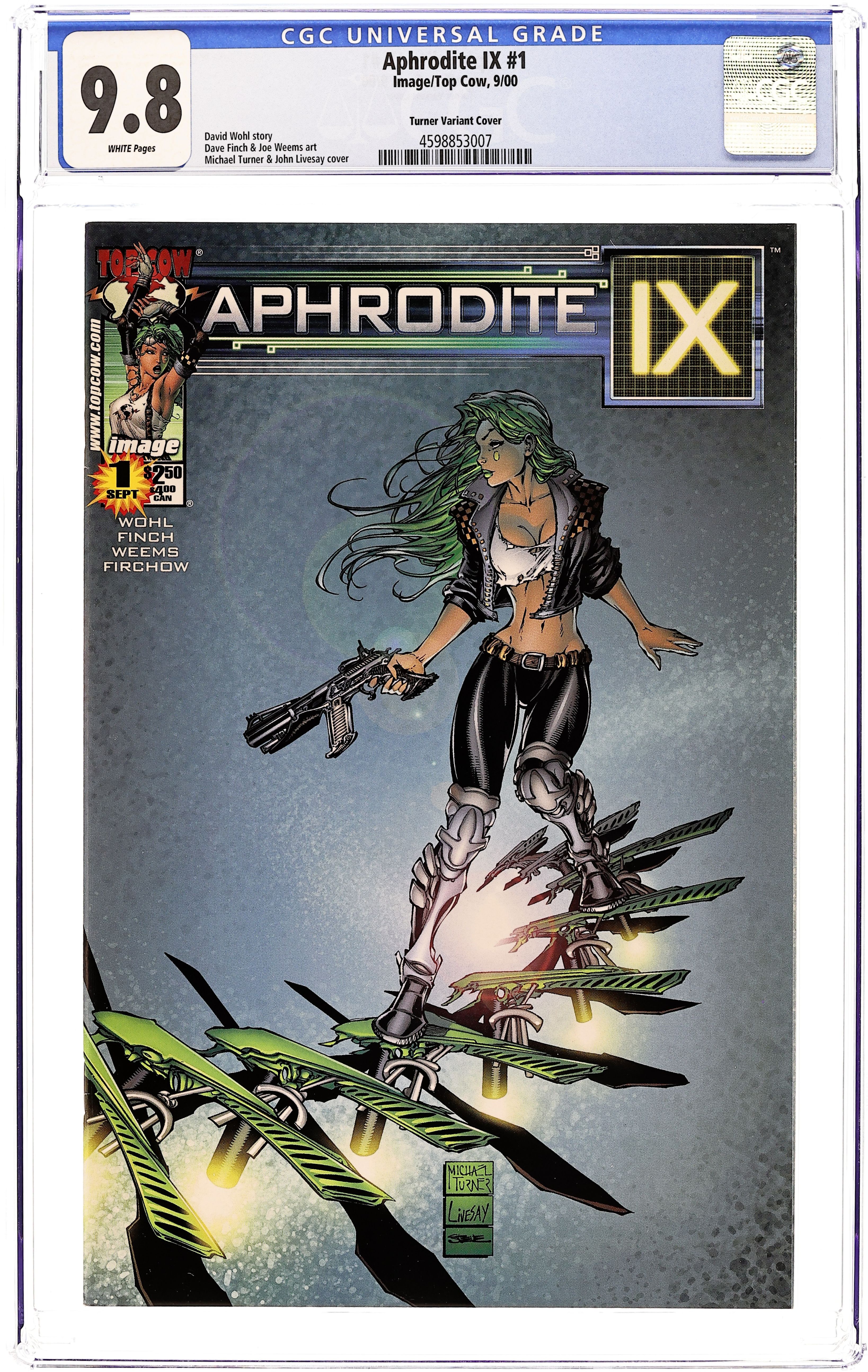 Michael Turner Cover. (W) David Wohl (P) Dave Finch (I) Joe Weems V (C) Liquid! Who is Aphrodite IX? Where did she come from? Who created her and for what purpose? These questions and many others will be on HER lips as well as everyone else's as they catch a glimpse of Top Cow's sure-fire hit of the summer of 2000, APHRODITE IX, brought to you by Dave (BATMAN/DARKNESS, ASCENSION) Finch, David (WITCHBLADE) Wohl, and Joe (MAGDALENA) Weems!!! With alternate covers by Marc Silvestri and Joe Benitez. FC, 32pg$2.50 Cover price $2.50.