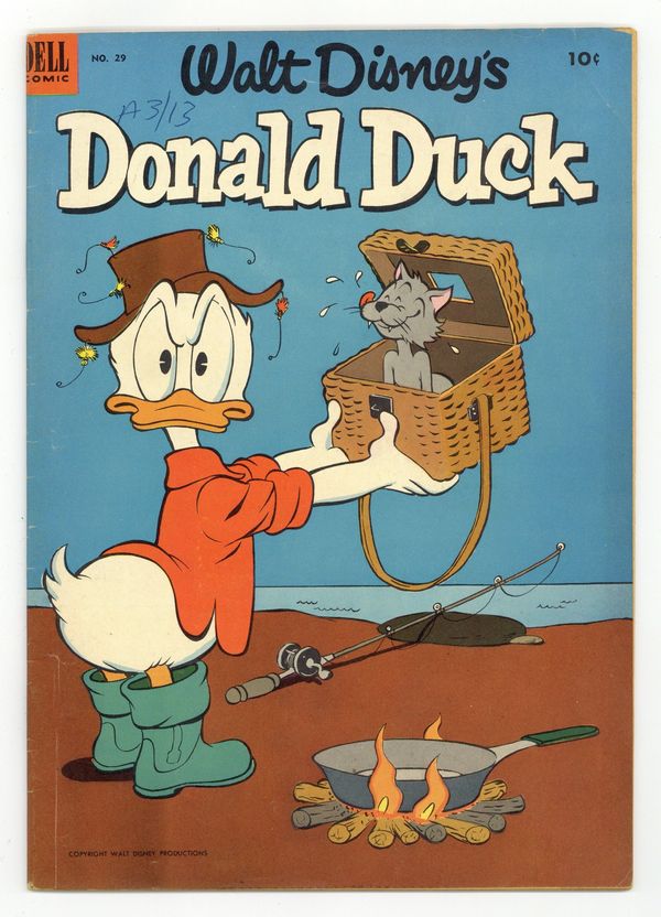 Published Jun 1953 by Dell/Gold Key/Whitman.$15.75Cover by Carl Barks. Stories and art by Jack Bradbury. The classic adventures of Disney's Donald Duck, featuring art by Carl Barks and other great Disney artists. Donald accidentally turns his TV into a device that can see anywhere, including a museum robbery in progress. Donald and his nephews meet an eccentric scientist who wants to shrink the world to end hunger. Donald gets two of the boys' toy arrows stuck to his head. Stolen Painting; Desert Health; Stuck Arrows. 32 pages, Full Color. Cover price $0.10.