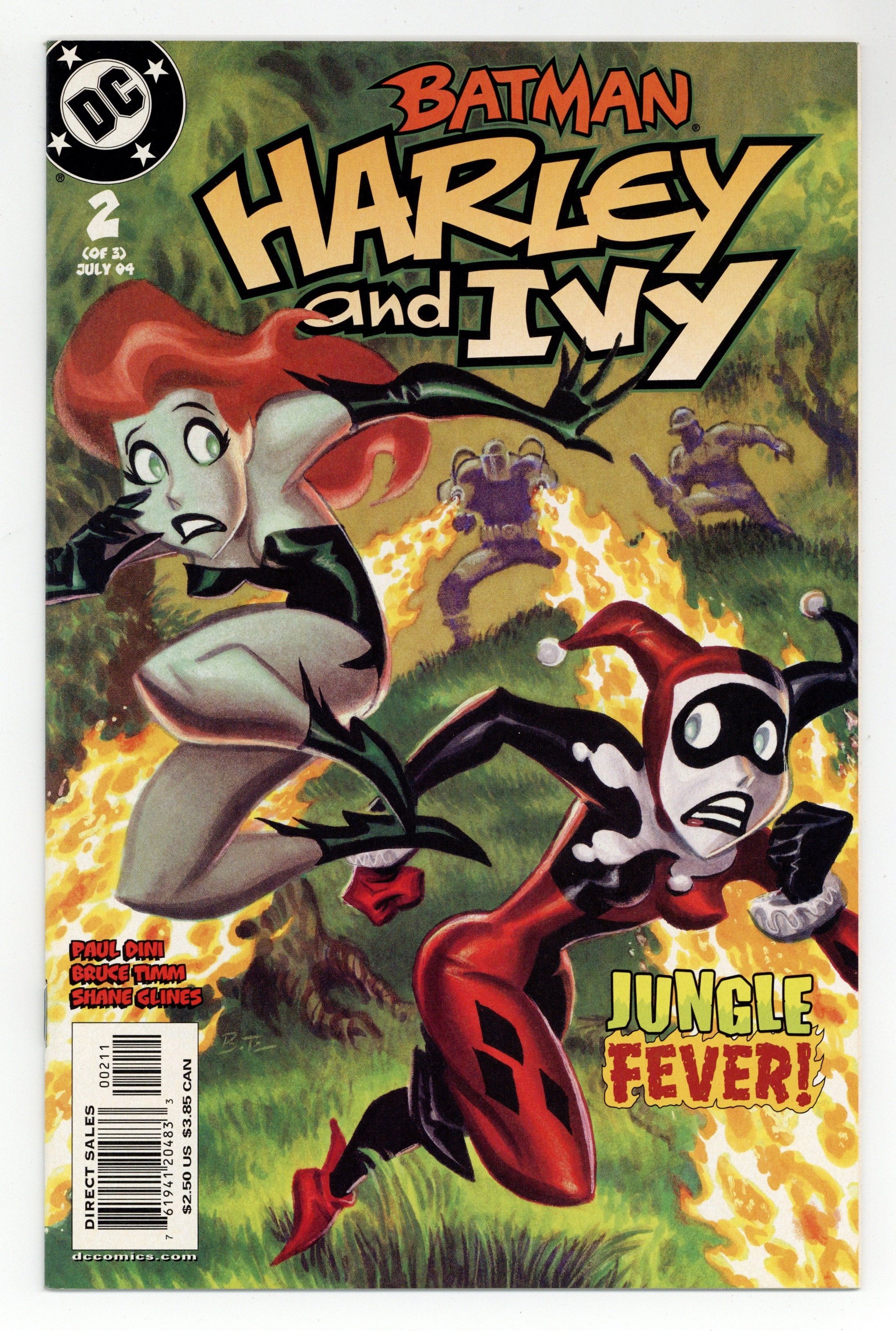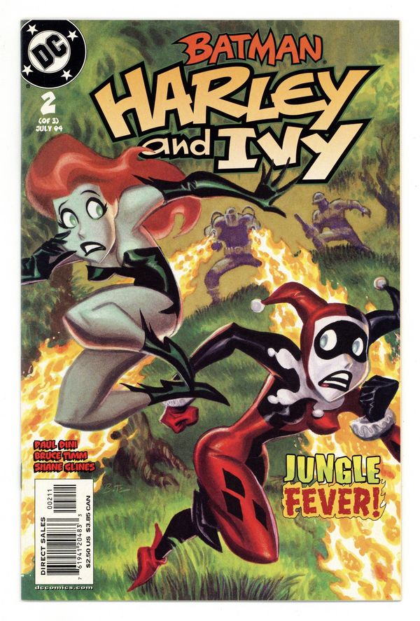 WRITTEN BY PAUL DINI; ART BY BRUCE TIMM AND SHANE GLINES; PAINTED COVER BY TIMM In stores May 26. It's a rumble in the jungle as the miniseries by Paul Dini & Bruce Timm continues! Harley and Ivy hunt down the priceless Zombie Root in lawless Costa Verde, but will the homicidal loggers Slash and Burn bag them first? And can Ivy resist the siren song of the rainforest? FC, 32 PG. (2 OF 3) $2.50 Cover price $2.50.