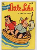 Cover art by Irving Tripp. Pieces of Eight; Lulu, Tubby, and Alvin dig up a trunk full of treasure at the beach. Untitled Little Lulu story; The Fellers think their clubhouse is going to be torn down, so they sell it to Lulu. Thirsty Children; Lulu tells Alvin about when she lost her mother and goes looking all over the world for her. Tub's Big Moment; Tubby is devastated when he cant afford to attend Little Rita Rosebud's stage show. All scripts by John Stanley, art by Irving Tripp. Two-page text story, Lulus Diry ("Diary"). Back cover has advertisement for five color Little Lulu pinups and Dell Comics Club. 52 pages, full color. Cover price $0.10.