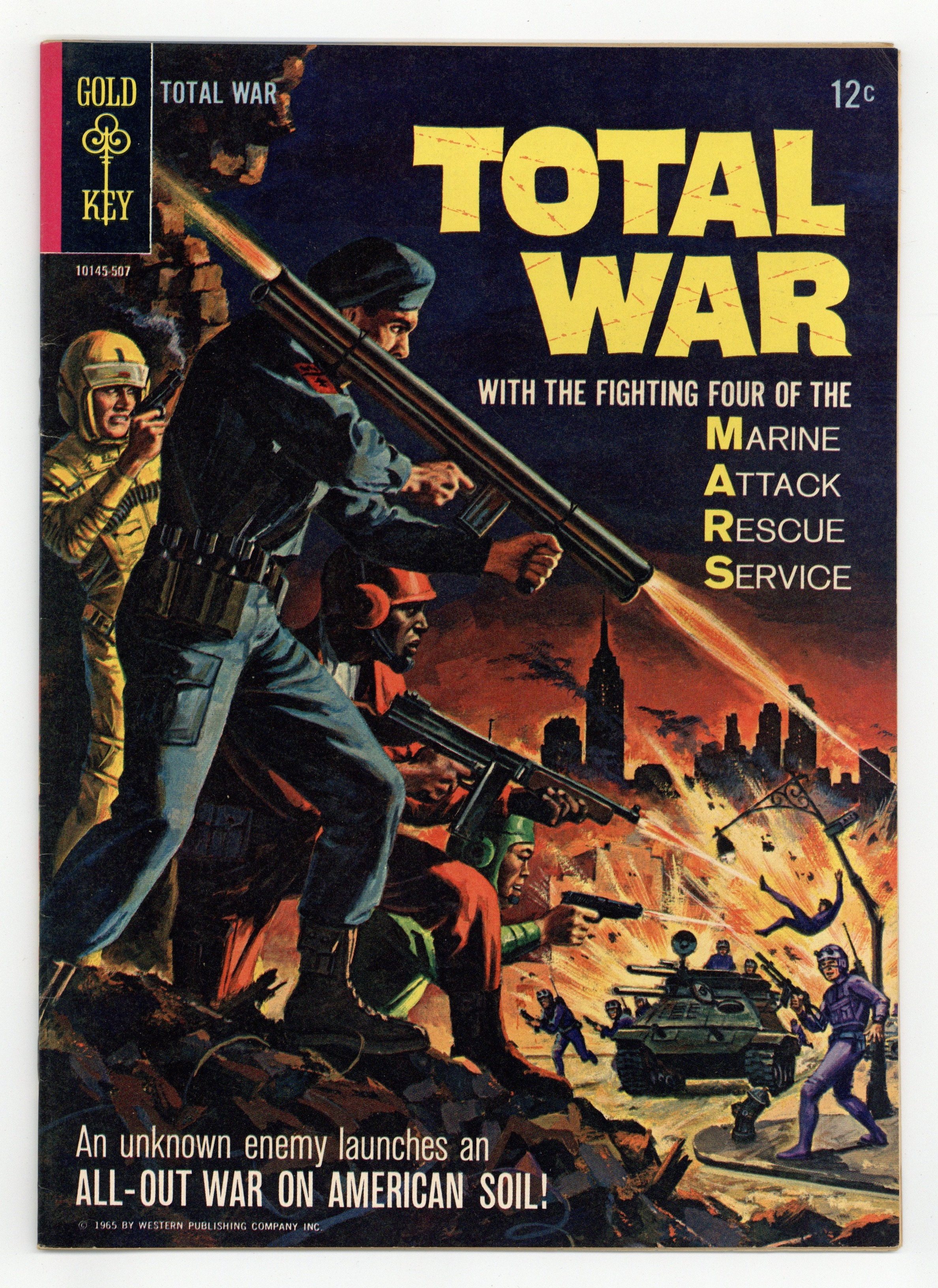 $22.50Painted front and back cover art by George Wilson. "Weapons and Warfare, Number 5: Modern Infantry Weapons" Keys of Knowledge page, art by Joe Certa. "Target: America," script by Leo Dorfman, art by Wally Wood; Strange invaders strike into America and around the world, ruthlessly killing as they go; The M.A.R.S. Patrol takes the lead in fighting them off between Philadelphia and New York City; The unknown enemy retreats and vanishes, killing their wounded as they go, but immediately strike again elsewhere. "Weapons and Warfare, Number 6: Modern Infantry Weapons" Keys of Knowledge page, art by Joe Certa. 36 pgs., full color. Cover price $0.12.