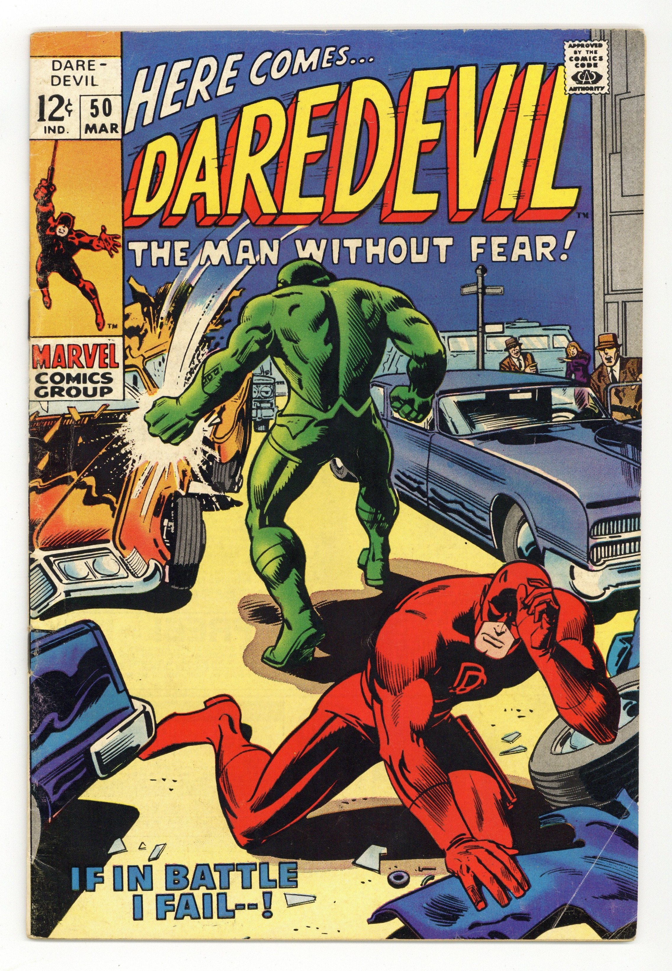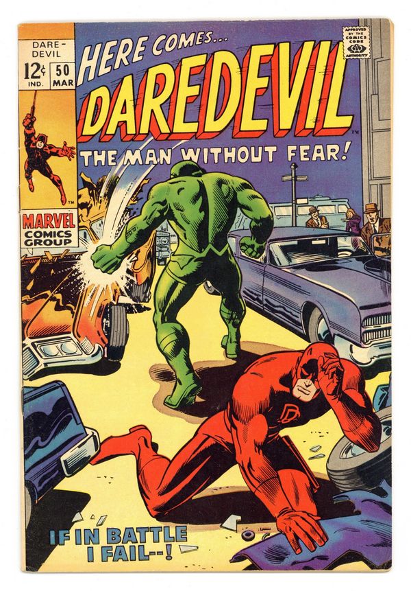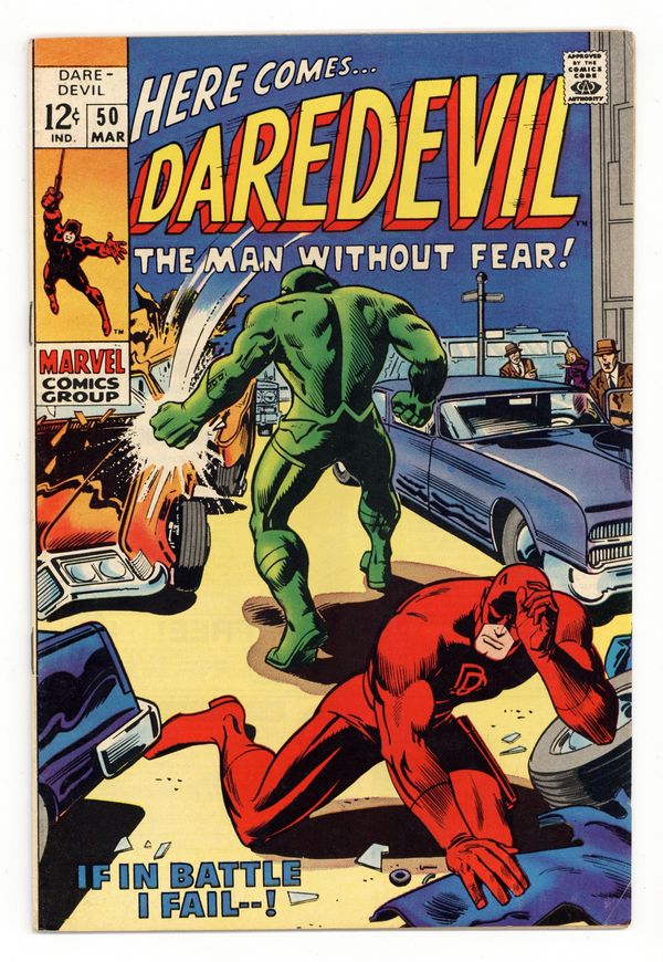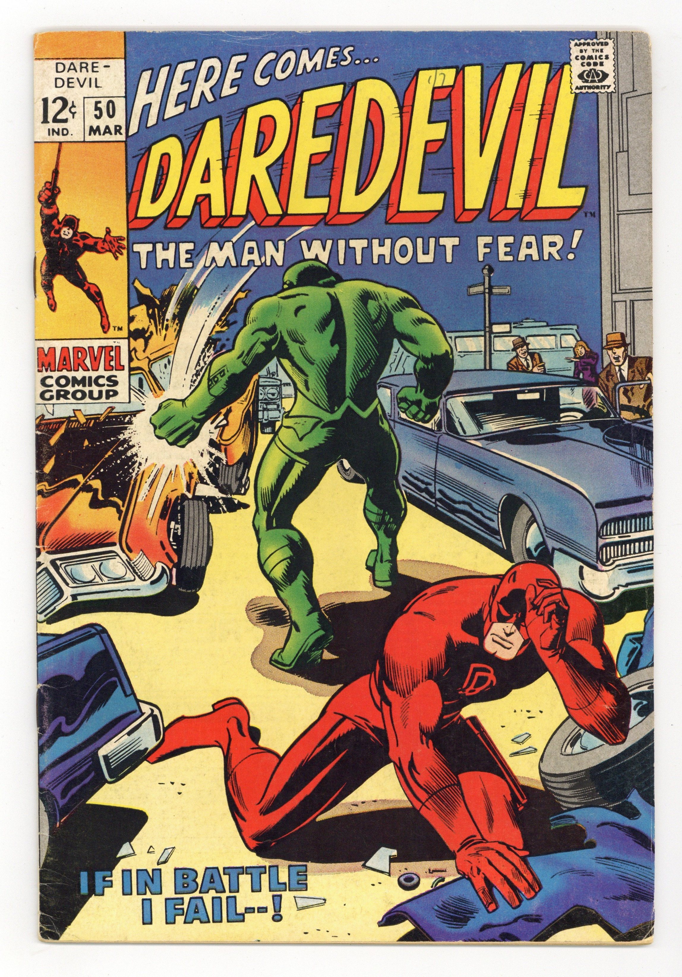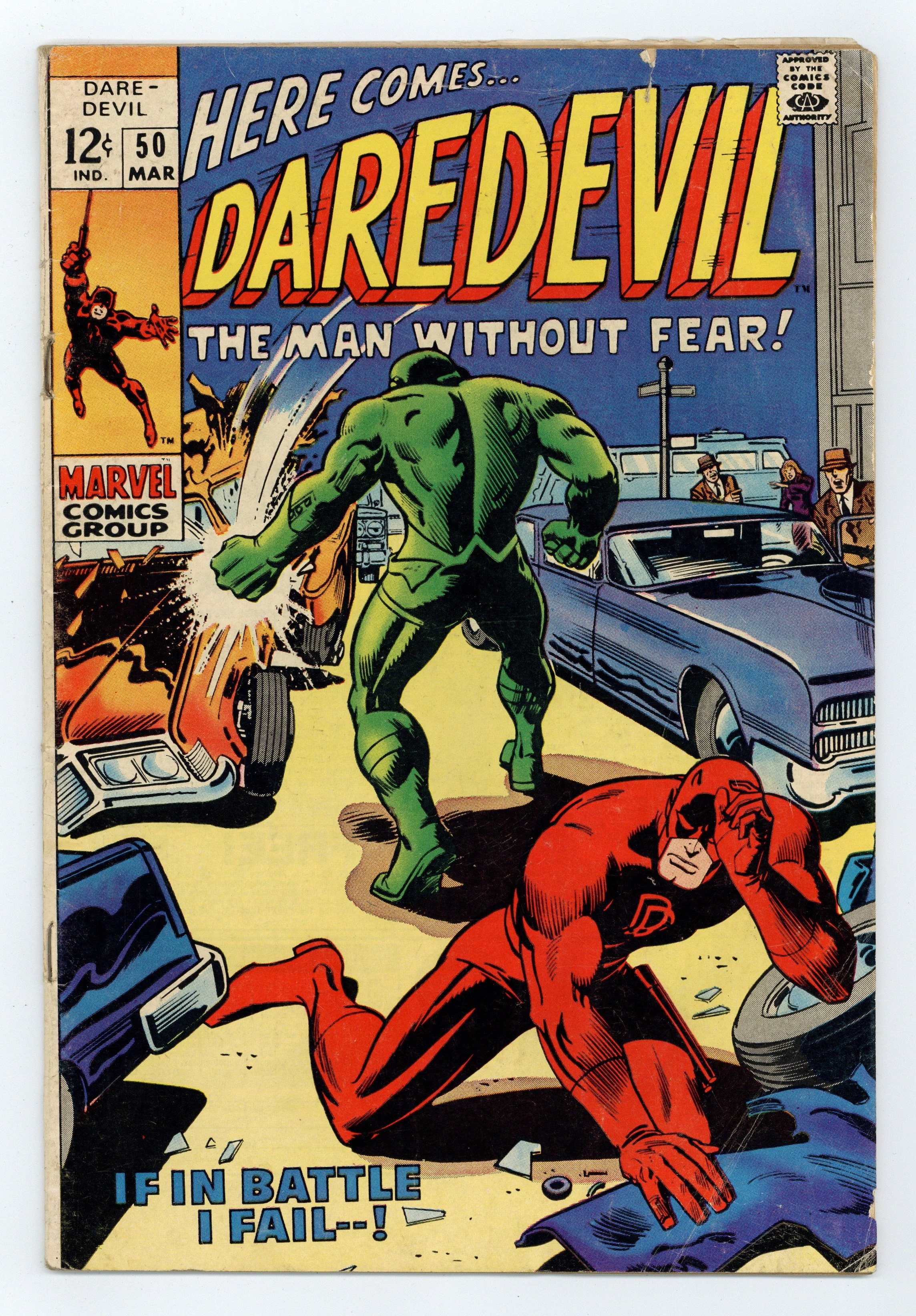 $46.00Cover pencils by Barry Windsor-Smith and Gene Colan (Daredevil figure), inks by Johnny Craig. If In Battle I Fall, script by Roy Thomas, pencils by Barry Windsor-Smith, inks by Johnny Craig; The Plastoid and DD duke it out until the giant robot is hurt and returns to his master; In the heat of battle with Hornhead, Starr accidentally sends the robot off to kill the man who hired him, Biggie Benson. Letter to the editor from Carl Gafford. Statement of ownership--average print run 435,200; average paid circulation 292,423. 32 pgs. Cover price $0.12. Cover price $0.12.
