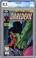 Starts Dec 8 Direct Edition. Cover pencils by Frank Miller, inks by Joe Rubinstein. Blind Alley, script by Roger McKenzie, pencils by Frank Miller, inks by Klaus Janson (pages 1-2) and Joe Rubinstein (pages 3-18); DD tries to help Bruce Banner out and gets himself badly beaten by the Hulk for his trouble; Ben hears Heather call DD "Matt" during the battle; appearances by Tony Stark (Iron Man) and J. Jonah Jameson. Cover price $0.40.