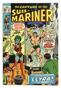 Tags: Sub-Mariner$20.50Cover art by Sal Buscema. "Call Her Llyra, Call Her Legend," script by Roy Thomas, pencils by Sal Buscema, inks by Jim Mooney; Seeking an undersea ally, Namor makes his way to the undersea realm of Lemuria; Namor meets Llyra, the empress of Lemuria, who has overthrown Karthon; She tells him of her origin in hopes of persuading him to join her conquest of the sea; Namor wants nothing to do with it and is caught off guard and captured; Namor meets Llyra's sister, Laurie, who frees him; Namor battles with the sea creatures Llyra can control and their battle ends in her death; However, Llyra changes back to Laurie and he realized that they both shared one body; Namor meets her mother and learns that it was her that had actually freed him. 36 pgs., full color. $0.15. Cover price $0.15.